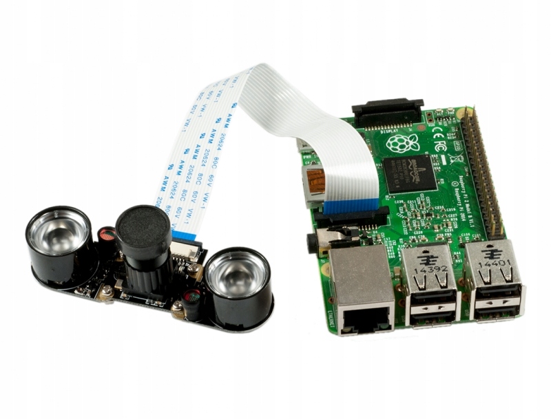 Kamera podłączana do dedykowanego portu 'camera' w Raspberry Pi 2 / 3 /4Układ posiada wysokiej jakości obiektyw z regulacją ogniskowej (gwint na obiektywie) co pozwala regulować ostrość obrazu. W zestawie oprócz kamery tasiemka do podłączenia do Raspberry Pi.