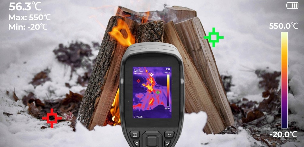 - Łatwa regulacja emisyjności obiektu, odległości pomiaru i temperatury otoczenia w celu uzyskania dokładniejszych wyników termicznych.
