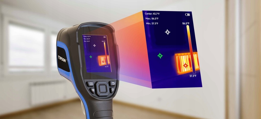 - Pokrywając zakres od -4°F do 842°F (od -20°C do 450°C) z dokładnością do ±3,6°F (±2°C), doskonale nadaje się do wykrywania mechanicznych i elektrycznych punktów zapalnych w warunkach przemysłowych. Jego wysoka czułość <40mK pomaga identyfikować problemy z izolacją i wilgocią w budynkach.