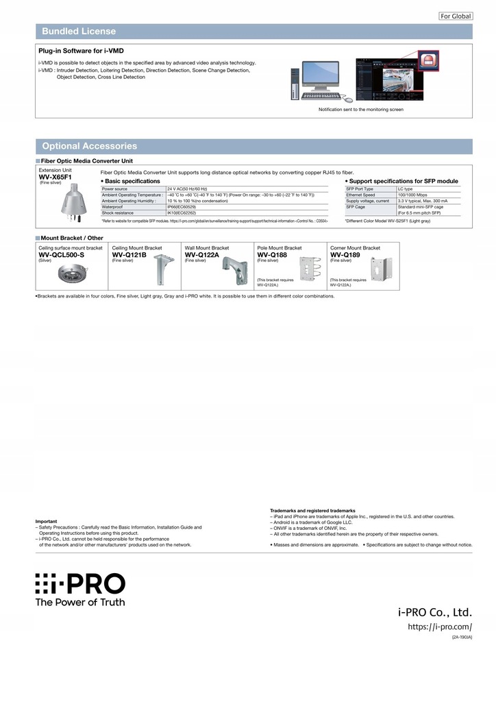 · Konwerter mediów światłowodowych (opcjonalnie WV-X65F1)