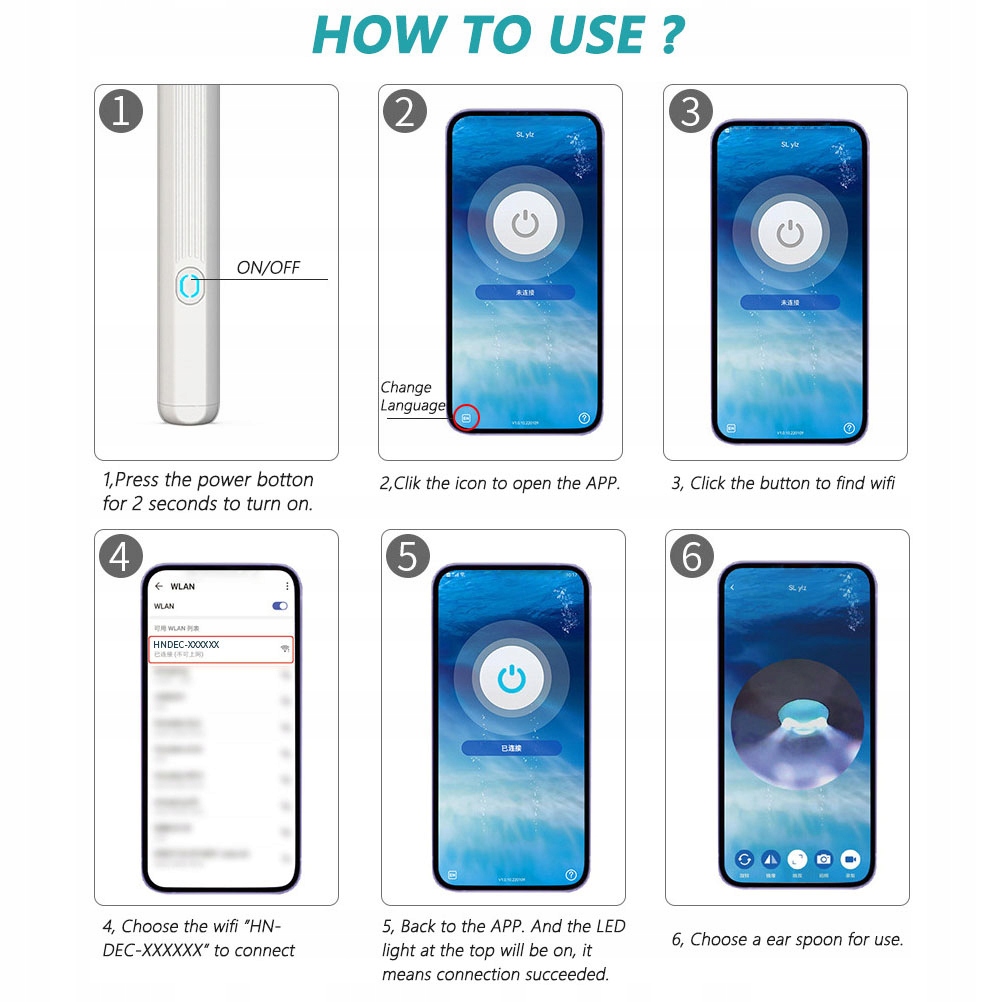 Ten bezprzewodowy otoskop może pomóc użytkownikowi uzyskać lepszą jakość obrazu, dzięki czemu czyszczenie uszu jest wygodniejsze, nie powodując obrażeń, pozwala użytkownikowi wizualnie wybierać uszy, łącząc aparat z aplikacją w telefonie. Ponadto dostępne są różne akcesoria do codziennego życia.
