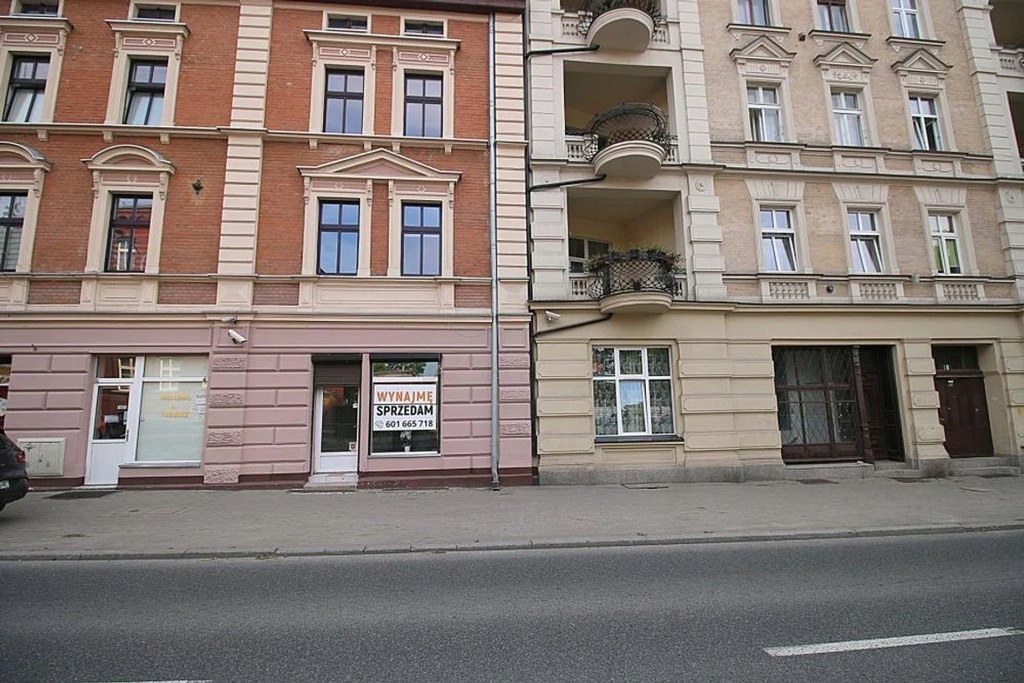 Budynek po renowacji, okna PCV, witryna, bezpośrednio przy ulicy Dworcowej, wejście z chodnika.