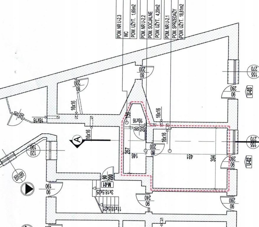 Na powierzchnię 37,86 m2 składa się: pomieszczenie sprzedażowe 25,59 m2, pomieszczenie socjalne 9,40 m2, wc 2,87 m2.