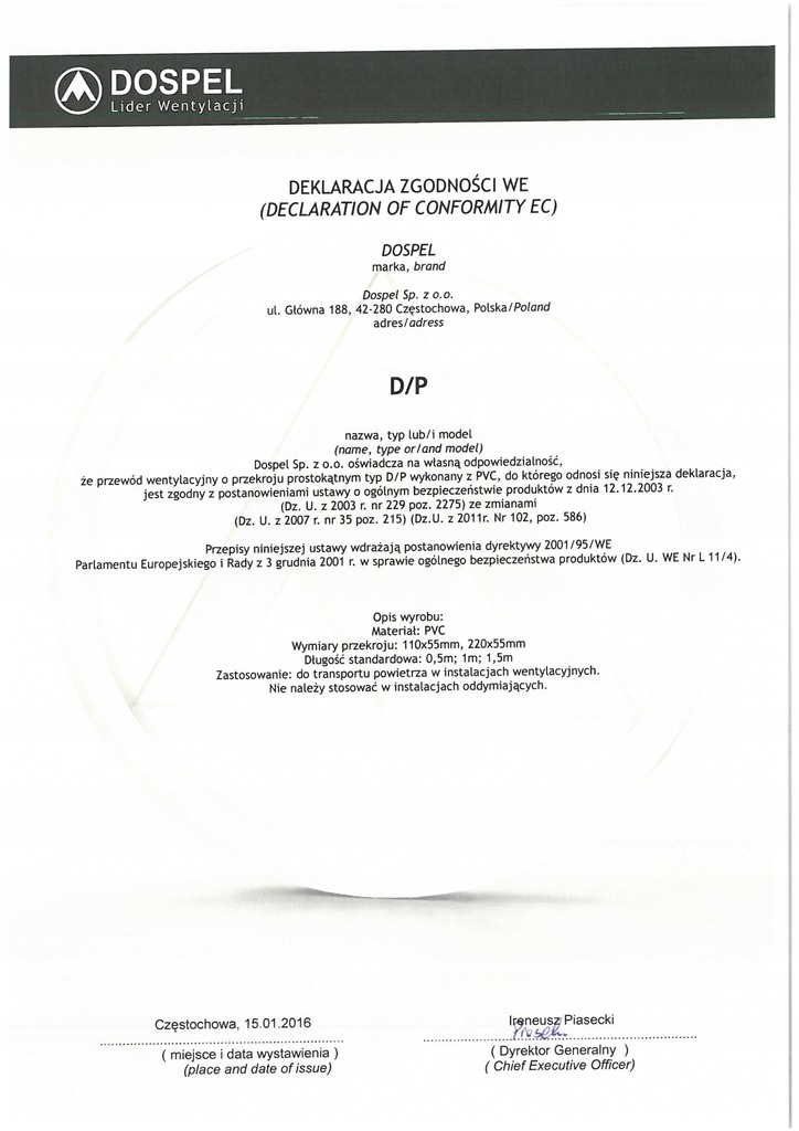 DEKLARACJA ZGODNOŚCI - ORGINALNE PRODUKTY DOSPEL