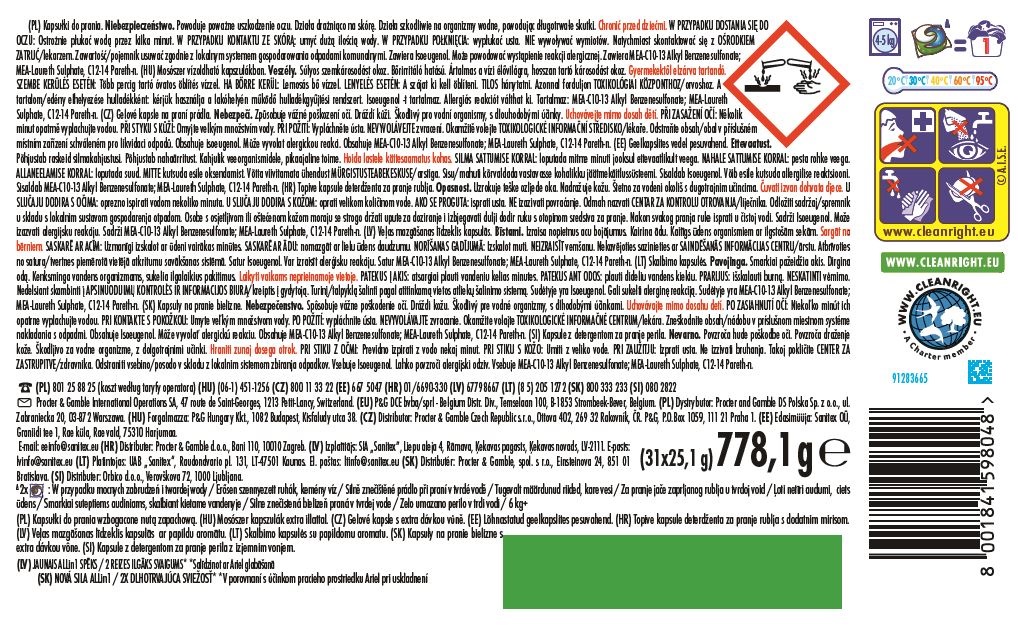 Każda kapsułka posiada komory, w których odpowiednio dobrane składniki zapewniają uzyskanie optymalnego efektu czystości, usuwania plam i świeżości prania.
