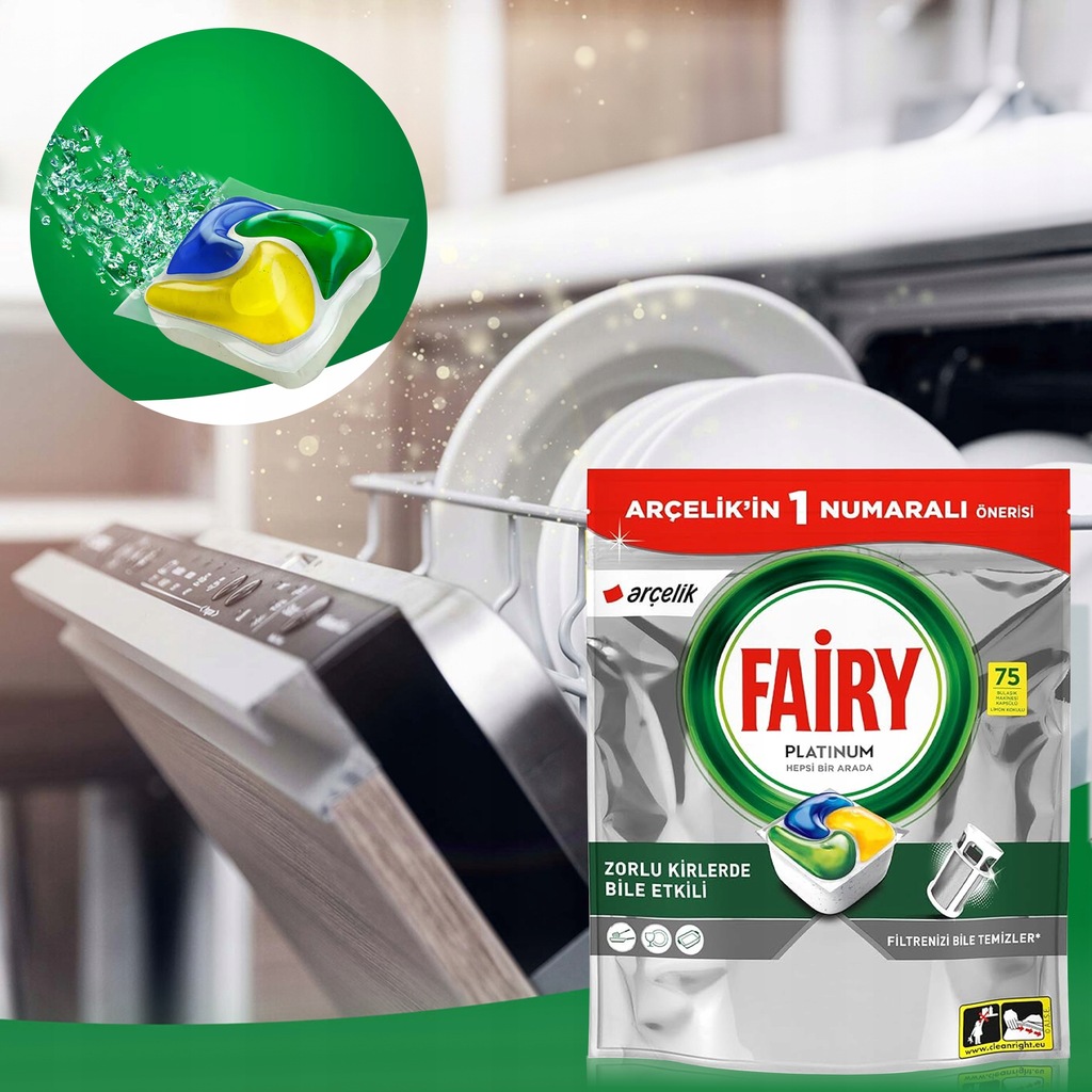 Kapsułki Fairy Platinum All in One Lemon są przeznaczone do stosowania w zmywarkach automatycznych. Wystarczy umieścić jedną kapsułkę w dozowniku, a następnie uruchomić zmywarkę na wybranym programie.