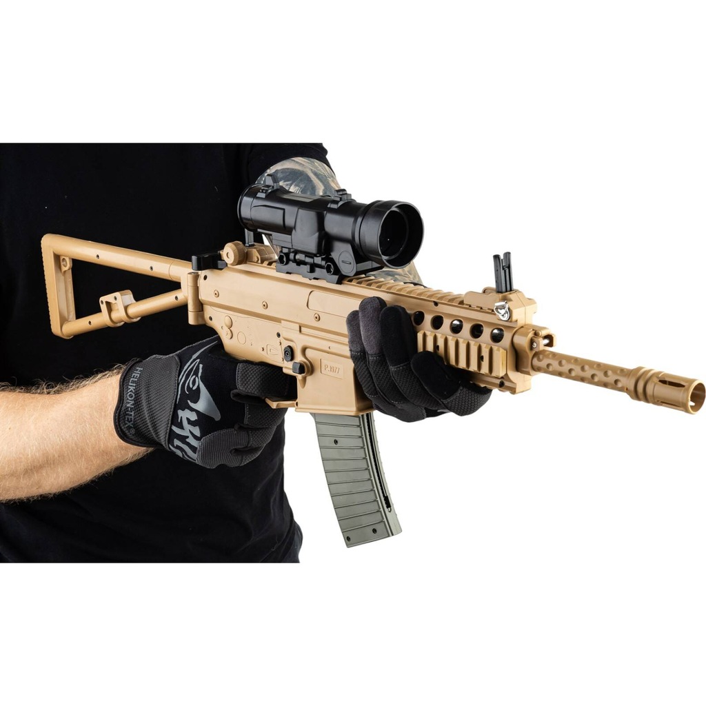 Replika karabinu szturmowego Double Bell BI-8002 przeznaczony do zadań specjalnych. Ten wojskowy styl karabinu to nie tylko świetny wygląd, ale także trwałość i niezawodność, które są niezbędne w każdej sytuacji. Jeśli szukasz niezawodnego karabinu do zabawy lub treningu, ten jest doskonałym wyborem.