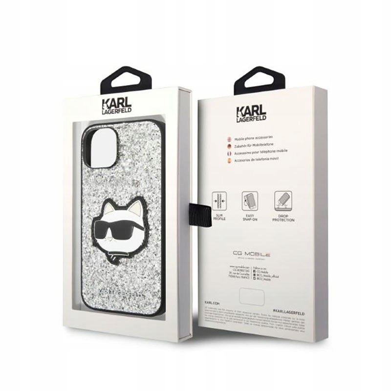 Karl Lagerfeld NFT Glitter Choupette Patch - Etui iPhone 14 Plus (srebrny)