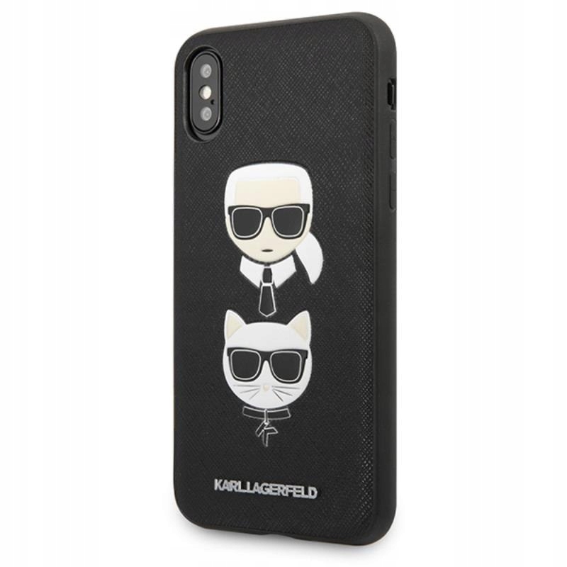 Karl Lagerfeld Saffiano Karl & Choupette Heads - Etui iPhone Xs / X (czarny)