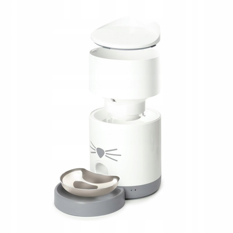 Inteligentny podajnik Catit Pixi W przeciwieństwie do Smart Fountain, jest produktem samodzielnym. Ma taką samą łączność Wi-Fi jak Fontanna i łączy się z tą samą aplikacją. Karmnik wyposażony jest w pojemnik zasypowy ABS o pojemności 2,8 litra i mieści około 1-1,2 kg suchej karmy dla kotów (w zależności od receptury/marki). Przód podajnika to przycisk, którego naciśnięcie spowoduje dozowanie żywności do miski ze stali nierdzewnej znajdującej się poniżej. Gdy pokrywa jest zamknięta, lej jest szczelnie zamknięty, ale pod górną pokrywą znajduje się kosz na środek osuszający (krzemionkę), który pomoże utrzymać świeżość żywności.