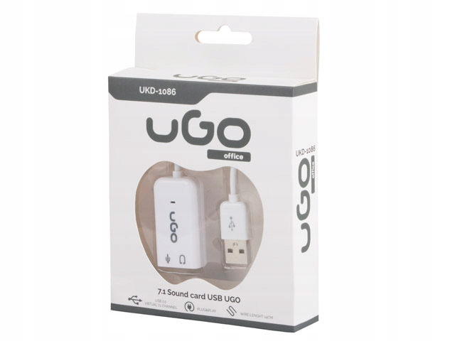 Karta dźwiękowa UGO USB 7.1 to świetne rozwiązanie problemu braku portu słuchawkowego i mikrofonowego w coraz cieńszych ultrabookach.Porządnie wykonany adapter o bardzo niewielkich wymiarach posiadający dwa gniazda przeznaczone do podłączenia mikrofonu i słuchawek.