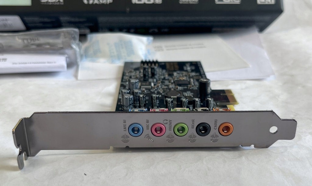 - załączone wyposażenie: Instalacyjna płyta CD zawierająca: Sterowniki systemu Windows 7, 8, Vista, instrukcja obsługi w formacie PDF, pakiet oprogramowania firmy Creative, skrócona instrukcja obsługi, wspornik z gniazdami wejścia/wyjścia o połowie wysokości