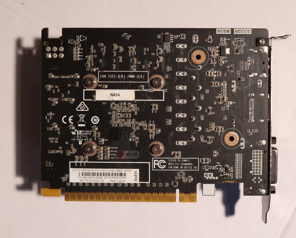 Karta graficzna ZOTAC GeForce GTX 1050Ti 4GB GDDR5 (288-1N454-000Z8, ZT-P10510A-10L), złącza HDMI, DVI, DP. Karta nie startuje, nie wyświetla obrazu, sprzedaż jako uszkodzona do naprawy. W komplecie sama karta bez oprogramowania i akcesoriów, zdjęcia przedstawiają sprzedawany egzemplarz.