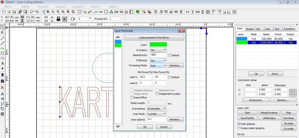 Program umożliwia m.in: funkcję grawerowania stożkiem, podział rysunku na warstwy wraz z ustawieniem różnych parametrów pracy dla każdej z nich, ustawienie skoku grawerowania, przygotowanie zdjęcia pod grawerowanie, zegar czasu pracy maszyny i tuby laserowej, możliwość zamontowania funkcji air assist (nadmuch powietrza tylko podczas cięcia i dla poszczególnych warstw) itp.
