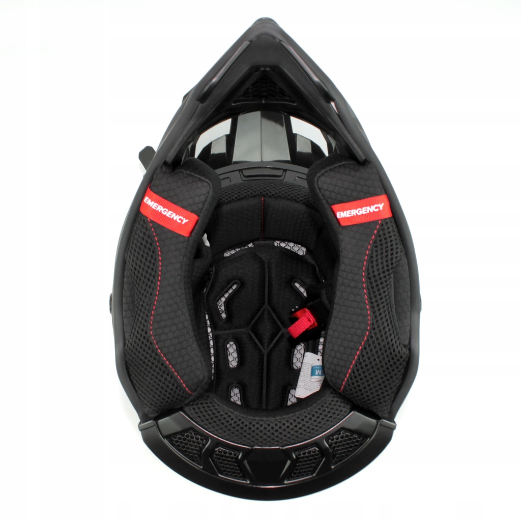 Kask IMX FMX-02 wyposażony został w 2 wielkości EPS-u, umożliwiając precyzyjne dopasowanie do kształtu głowy. Awaryjnie wyjmowane poduszki policzkowe zapewniają bezpieczeństwo w krytycznych sytuacjach. IMX FMX ma liczne kanały wentylacyjne oraz regulowany perforowany daszek.
