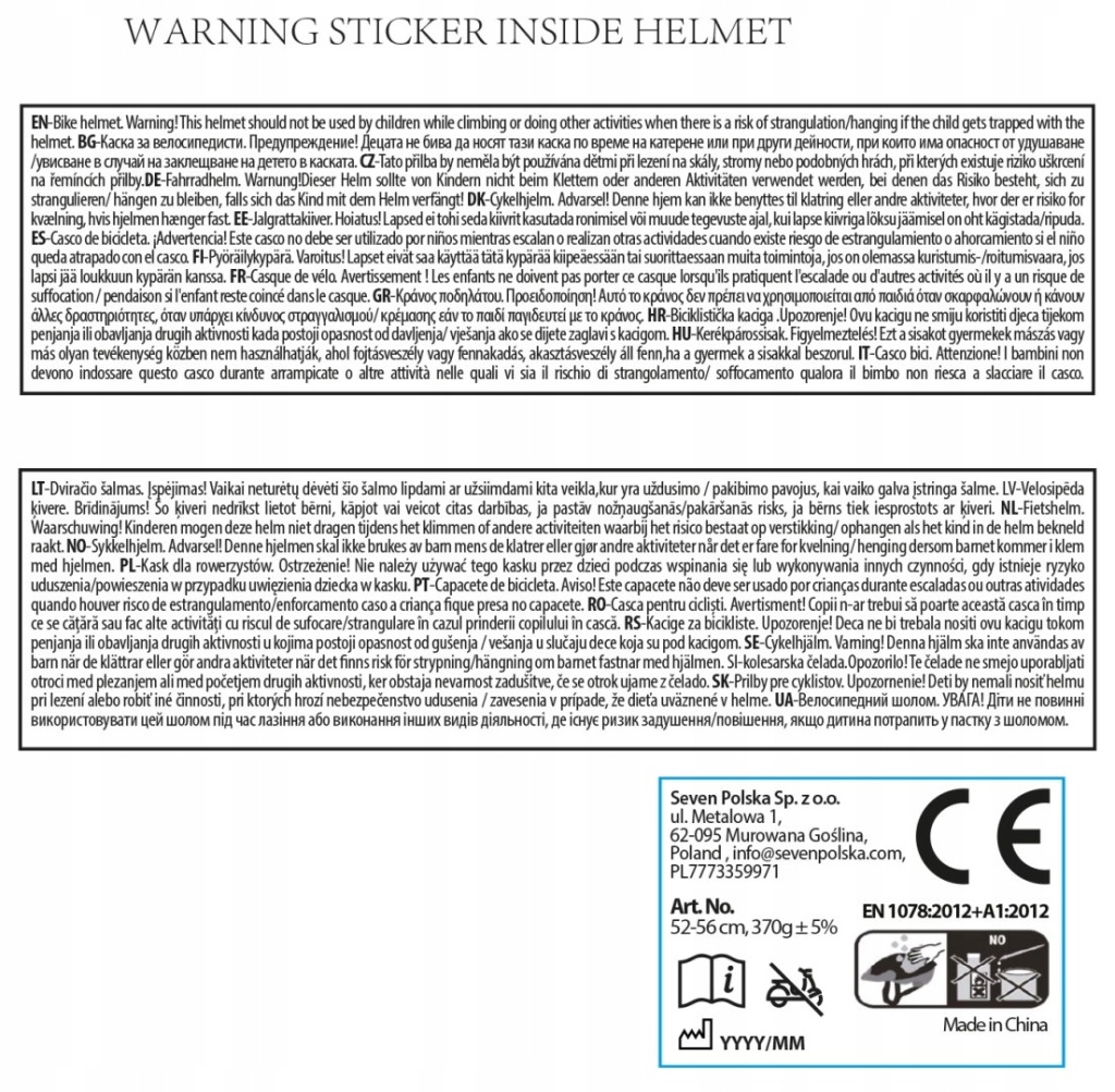 Ostrzeżenie! Nie należy używać tego kasku przez dzieci podczas wspinania się lub wykonywania innych czynności, gdy istnieje ryzyko uduszenia/powieszenia w przypadku uwięzienia dziecka w kasku.