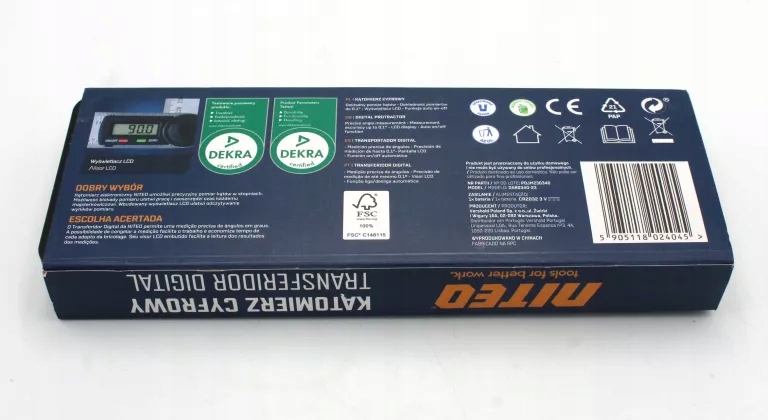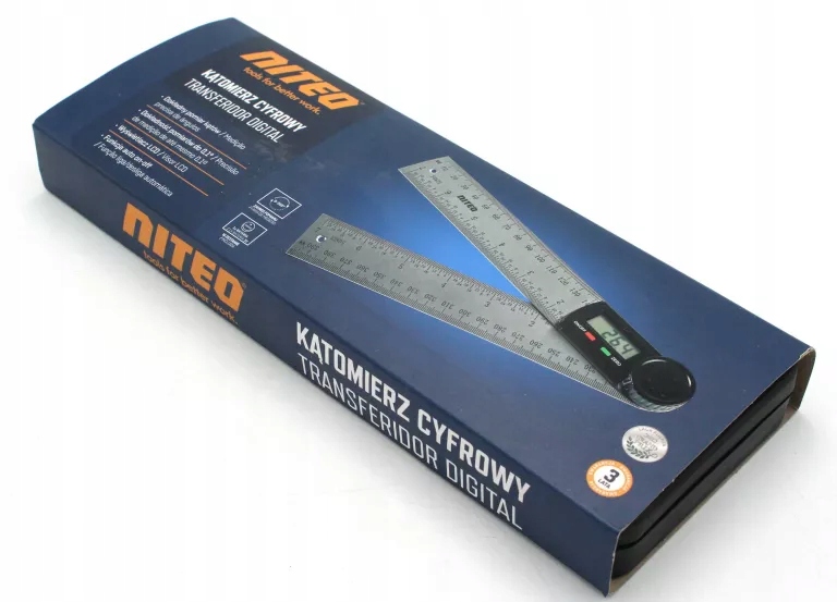 - Zawartość zestawu: Kątomierz cyfrowy Niteo, bateria, instrukcja obsługi