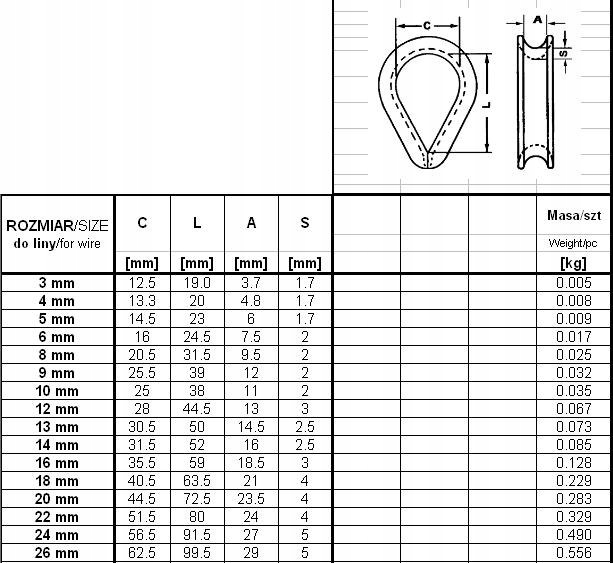 Kausza do lin 10 mm , DIN 6899B , ocynkowana elektrolitycznie .