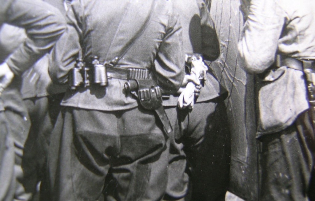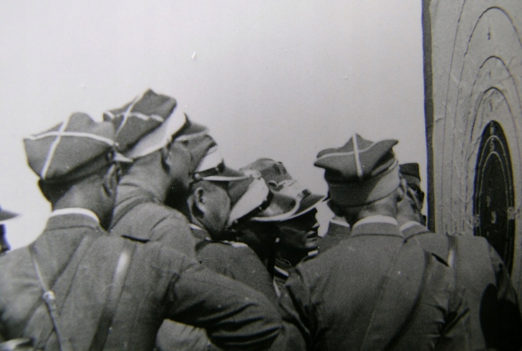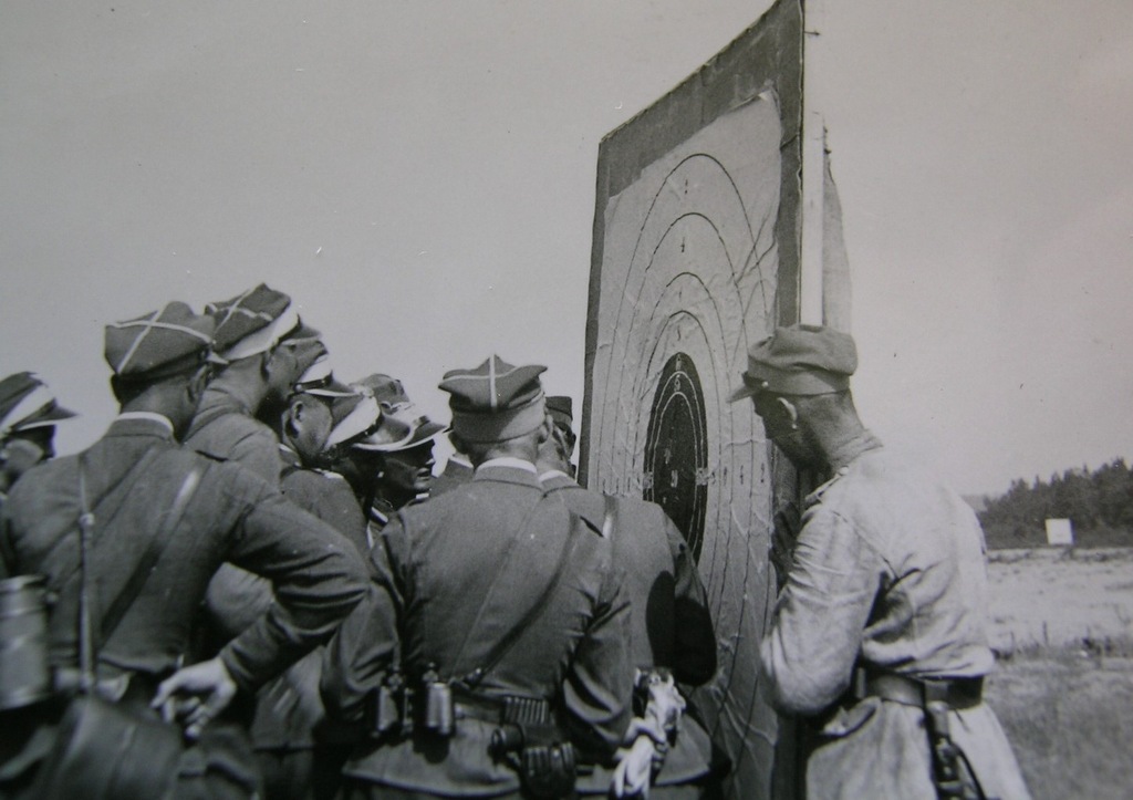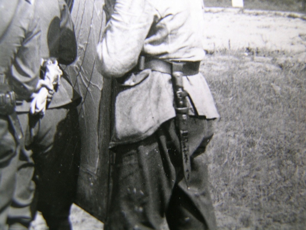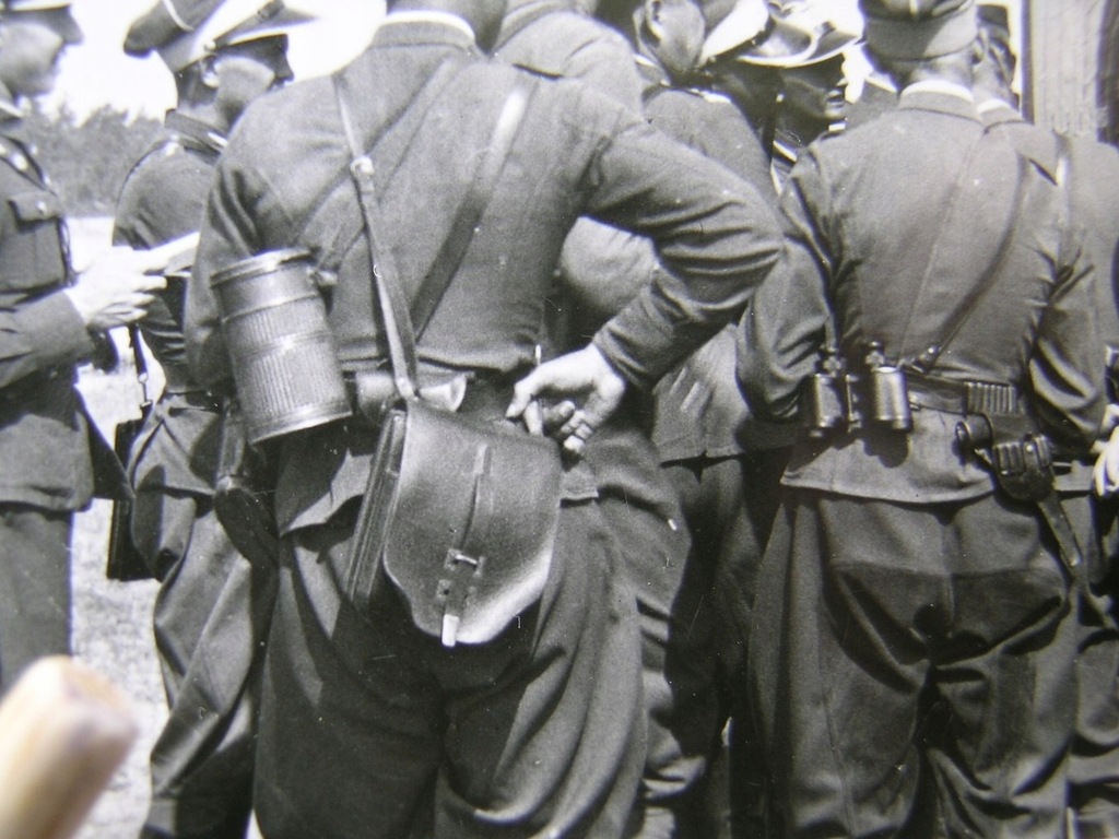 Przedmiotem licytacji jest ciekawa przedwojenna fotografia przedstawiająca grupę oficerów kawalerii podczas oceny strzelania do tarczy. Prawdopodobnie z 2 - go Pułku Ułanów Grochowskich - białe otoki przy rogatywkach i proporczyk na kołnierzach u góry biały. Fotografia bardzo wyraźna w najdrobniejszych szczegółach. Bardzo wyraźnie widoczne elementy umundurowania, broń boczna - rewolwery, lornetki, raportówki, maski p-gaz, a nawet bagnet u szeregowego ułana !!! . Format fotografii: - 11 cm. X - 6,8 cm.