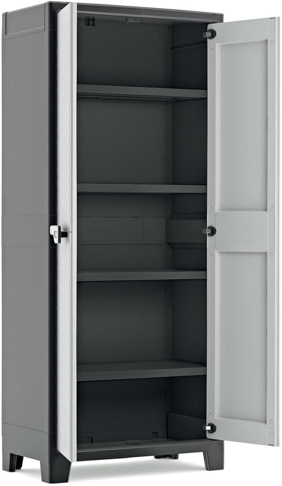 Szafa z półkami Keter Titan to doskonałe rozwiązanie dla osób szukających funkcjonalnego, trwałego i estetycznego mebla do przechowywania różnych przedmiotów. Dzięki przestawnym półkom, dużej wytrzymałości oraz możliwości zamknięcia drzwi na klucz, szafa zapewnia nie tylko praktyczność, ale również bezpieczeństwo przechowywanych rzeczy.