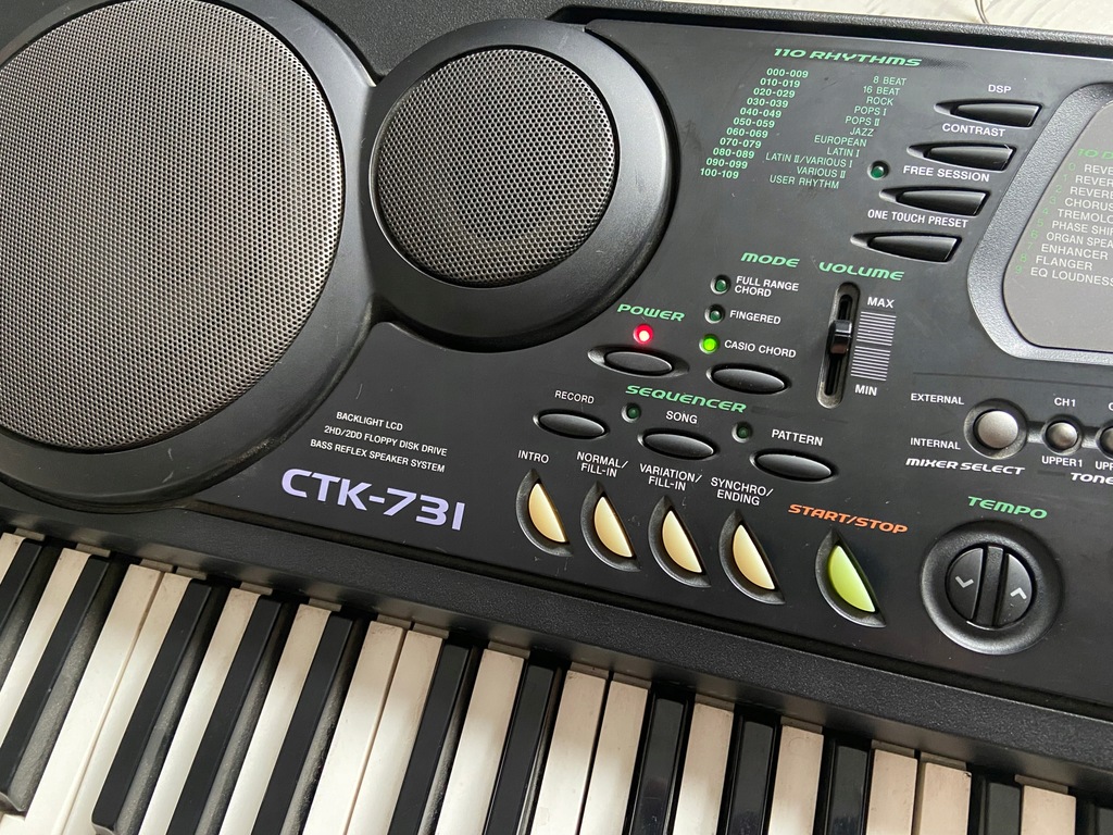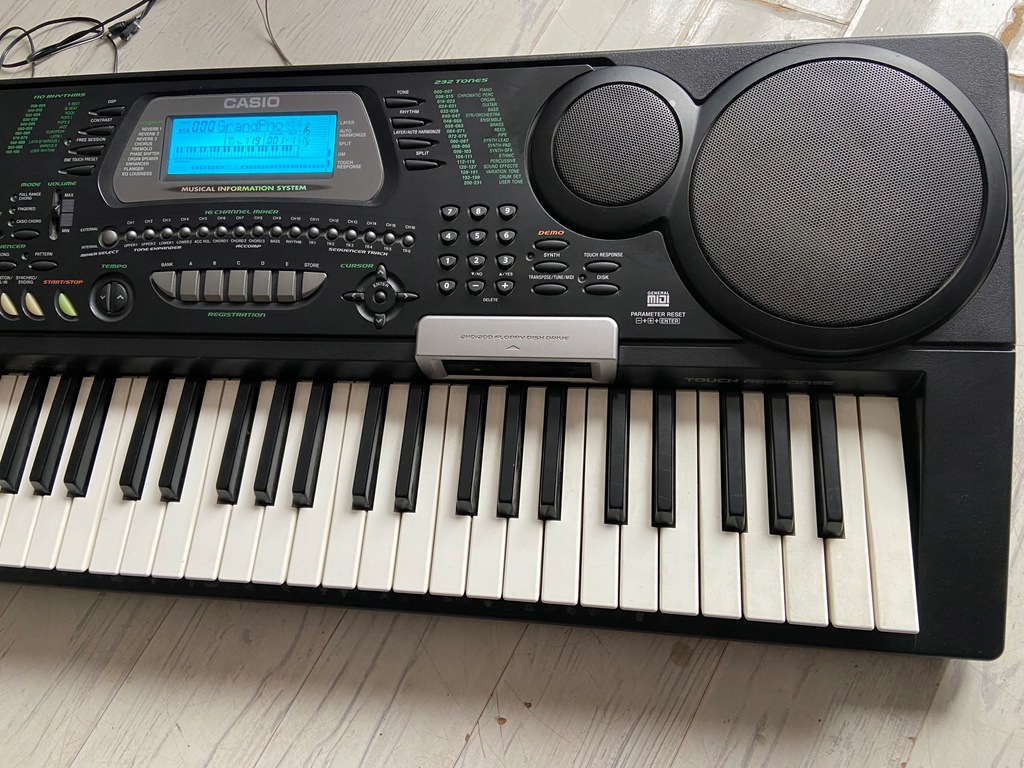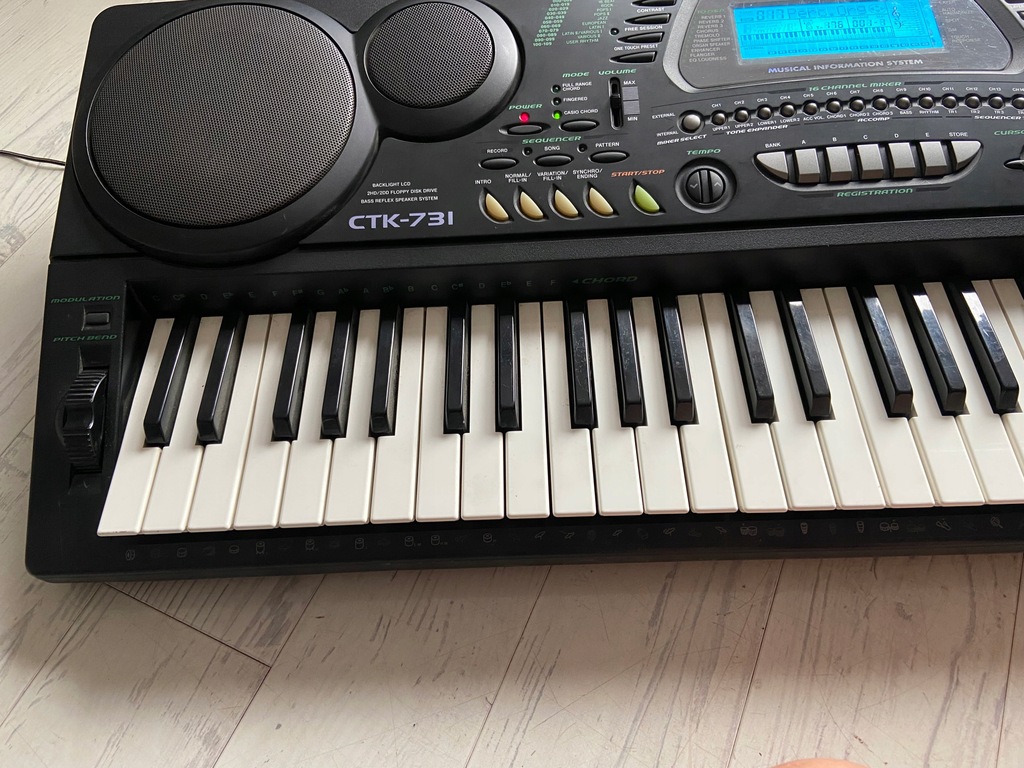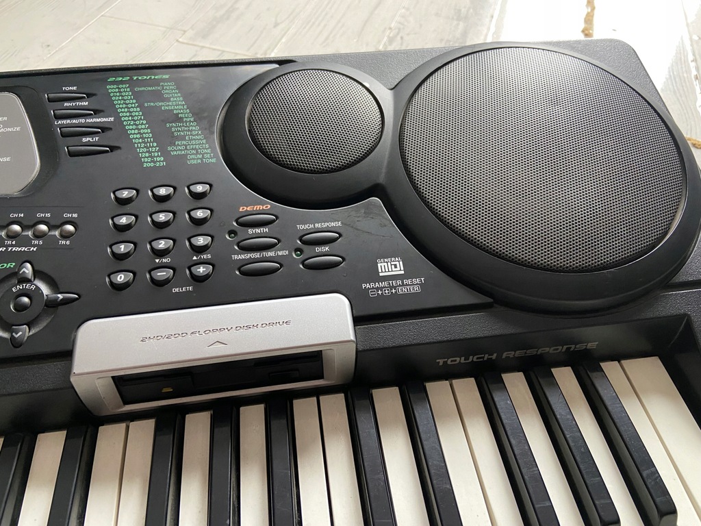 Keyboard w ładnym stanie, sprawny, mnóstwo brzmien podkładów, rytmów, świetne brzmienia bardzo dobra jakość. Wszystkie klawisze sprawne klawiatura dynamiczna. Jedyny minus to wystający kabelek do zasilania bez oryginalnego wtyku, wystarczy połaczyc do zasilacza i tyle. Zasilanie z baterii sprawne. Brak zasilacza.
