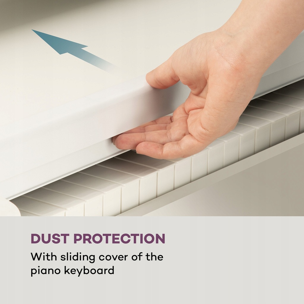 Pianino cyfrowe posiada klawiaturę z 88 klawiszami dynamicznymi dla ekspresyjnej gry w każdym momencie. Dysponuje łącznie 300 różnymi barwami dźwięku, 160 rytmami i 80 utworami demo, co zapewnia kreatywność i ogromne możliwości rozwoju. Klasycznym uzupełnieniem są także 2 pedały z funkcją piano i przedłużenia wybrzmienia.