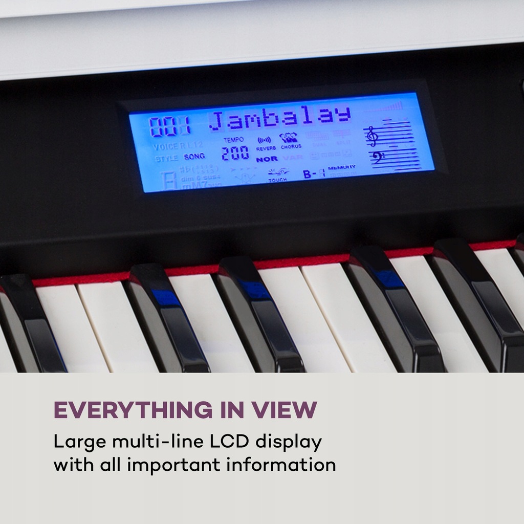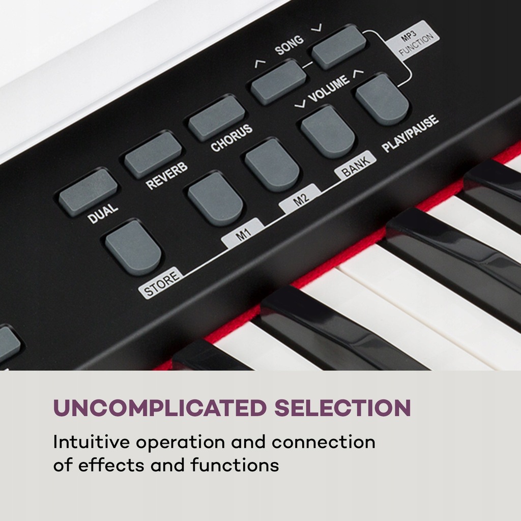 - Brzmienie muzyki: Pianino elektryczne z 88 klawiszami dynamicznymi dla ekspresyjnej gry