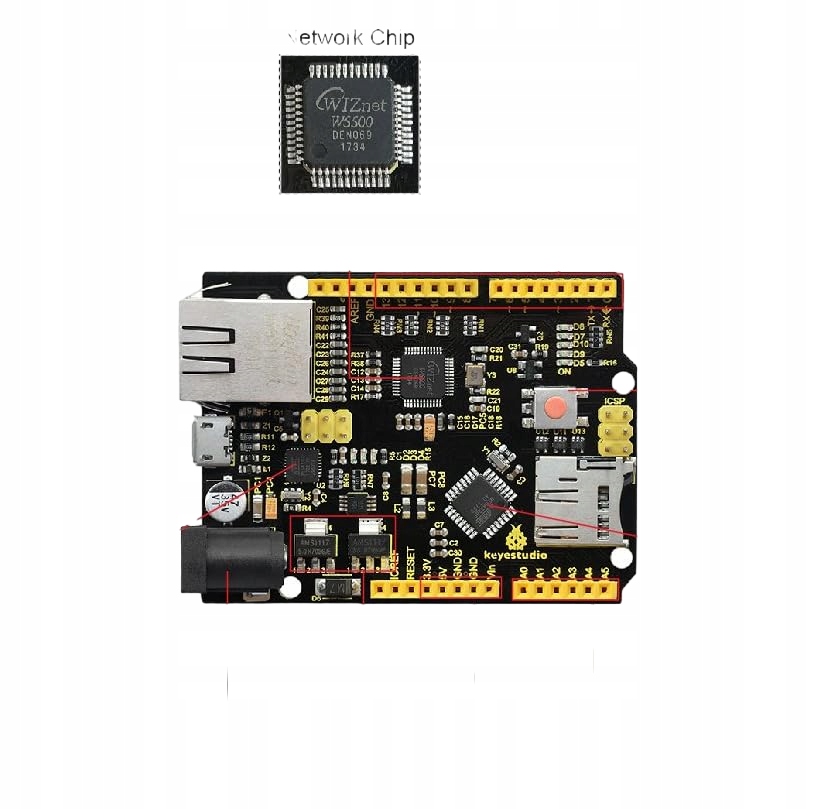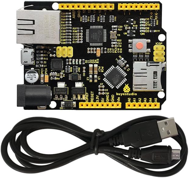- KEYESTUDIO W5500 płyta sterowania Ethernet dla Arduino IDE, obsługa karty MicroSD z kablem USB, nie osłona Ethernet (bez pinu)