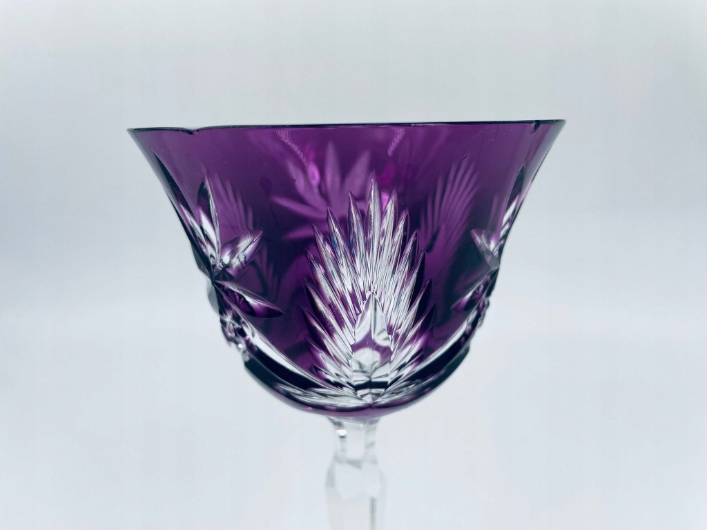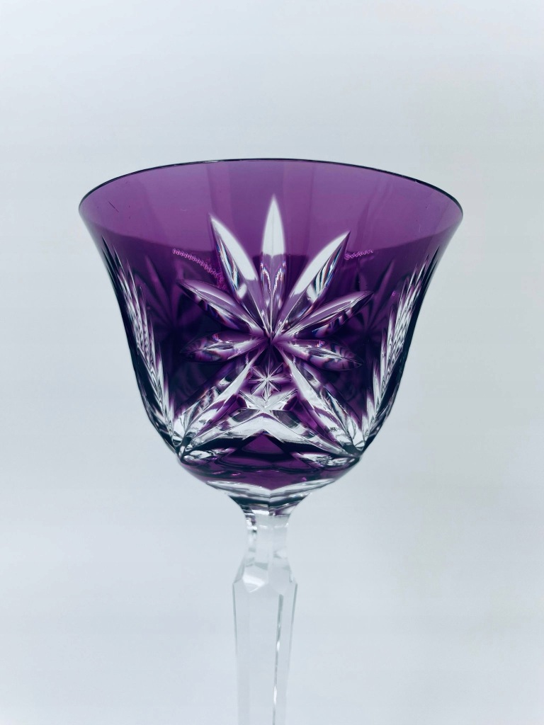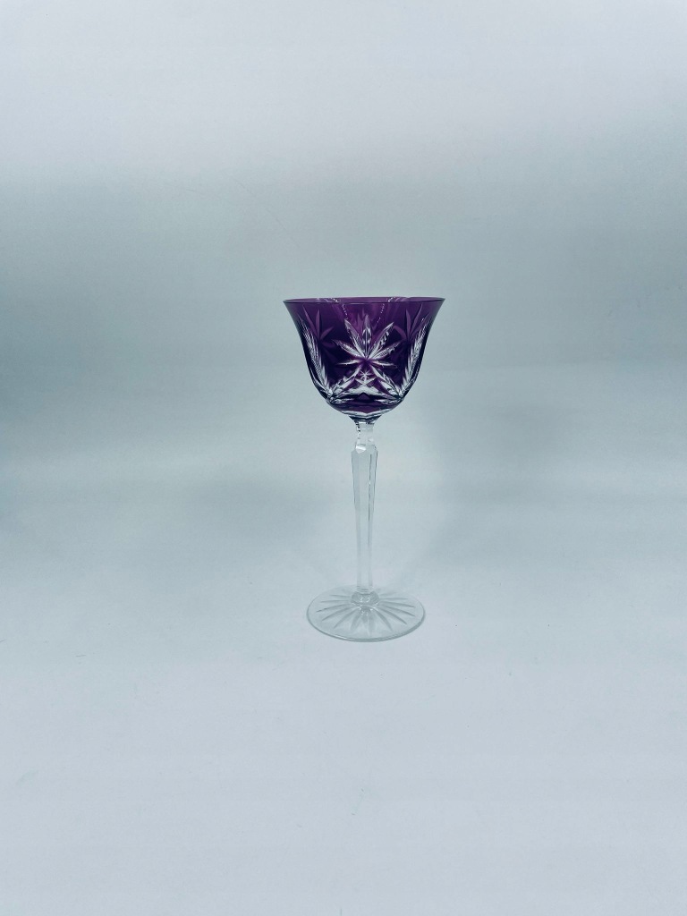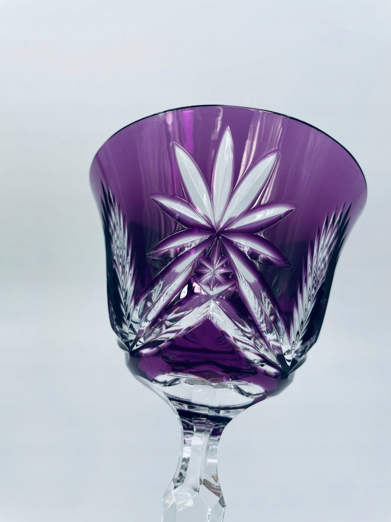 Kieliszek kryształowy fioletowy ze szlifem do wina.