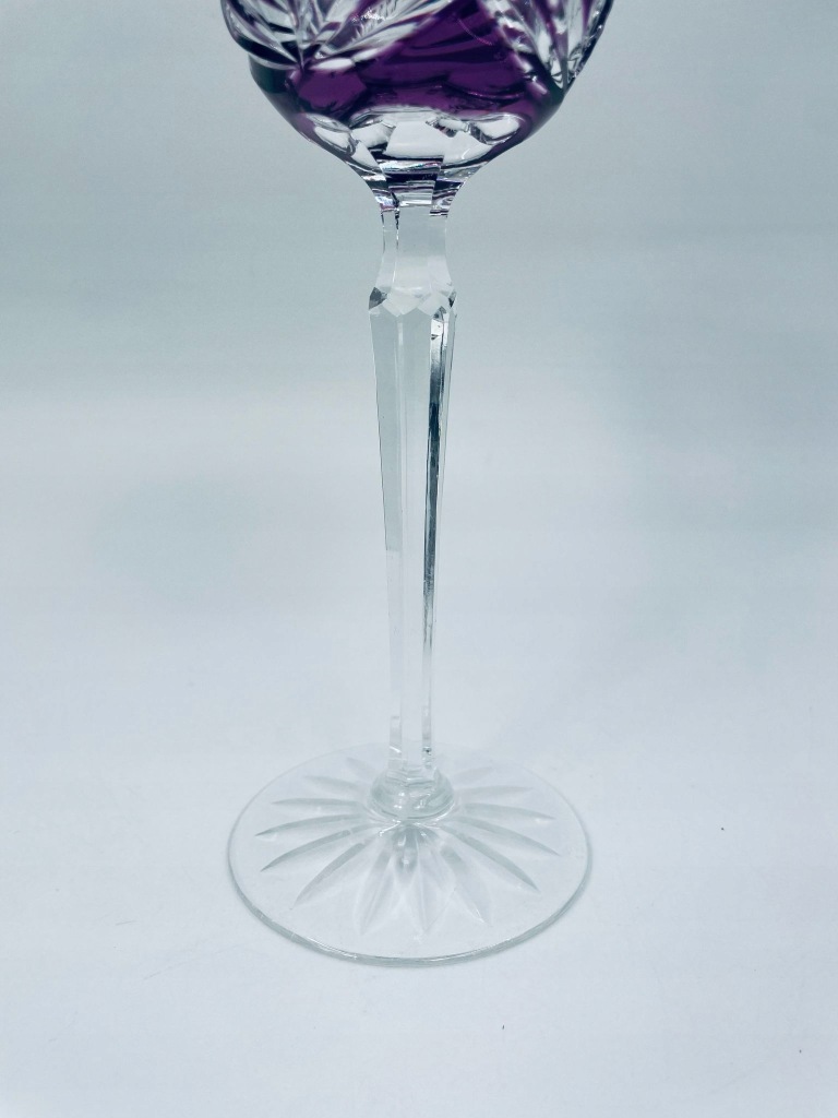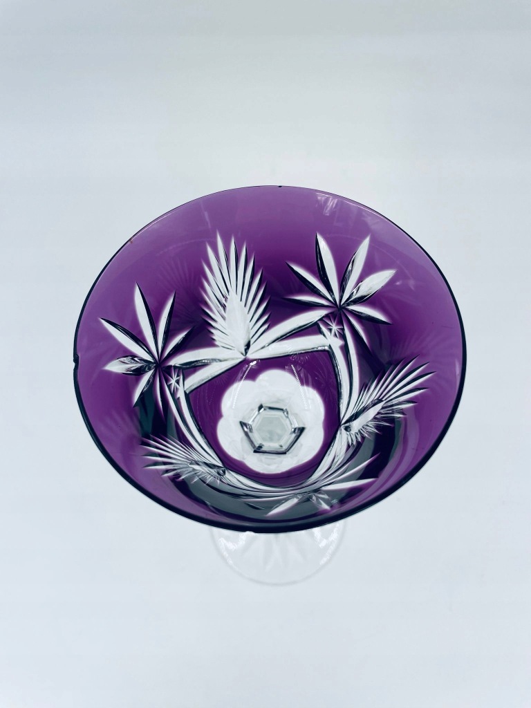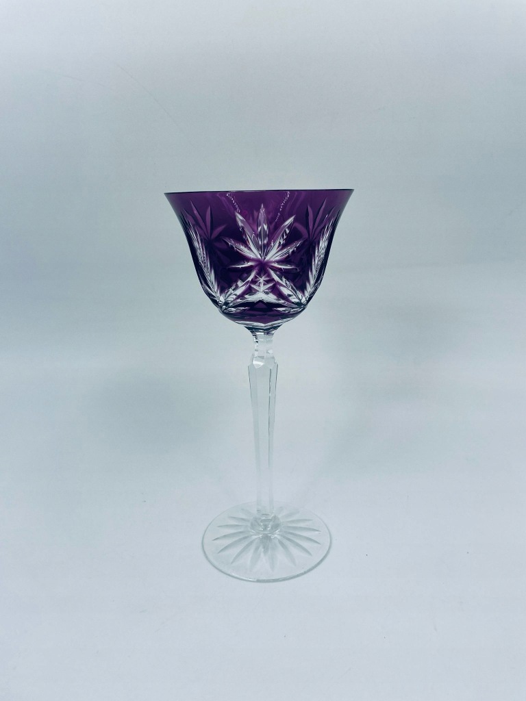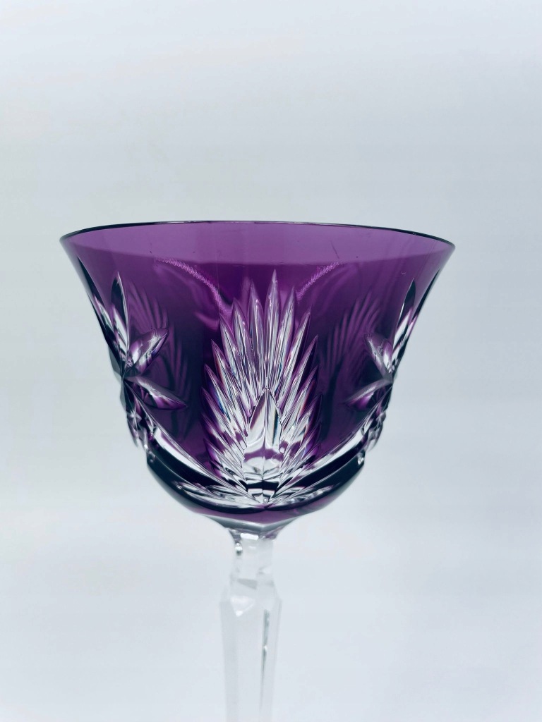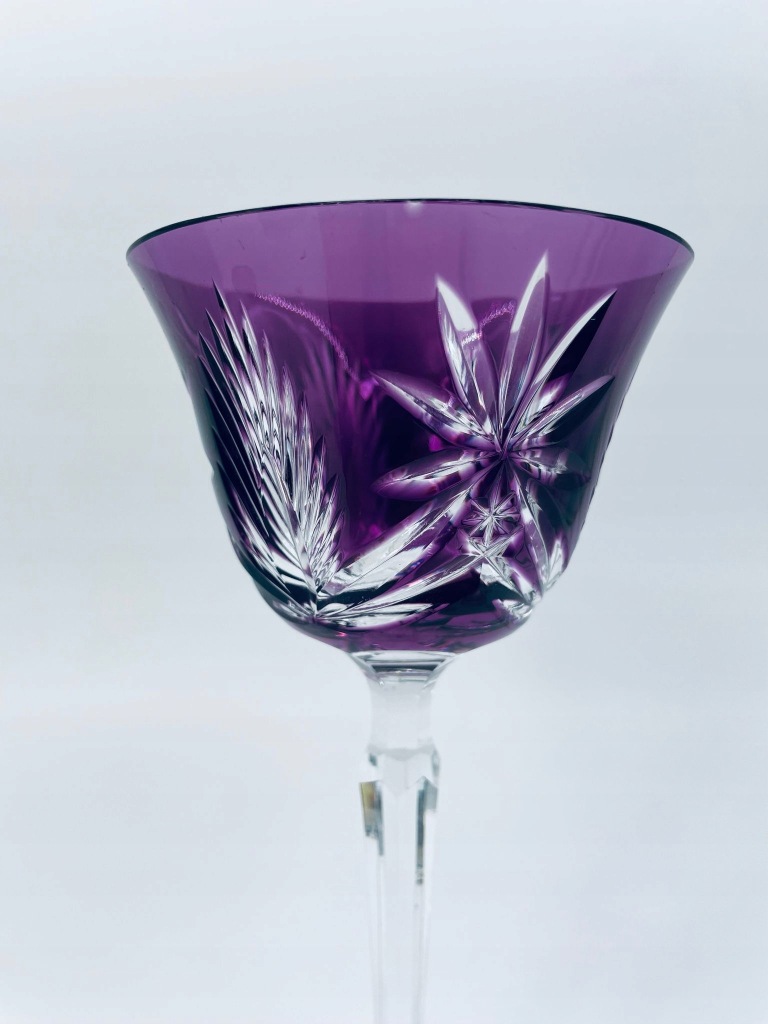 Kieliszek kryształowy fioletowy ze szlifem do wina.