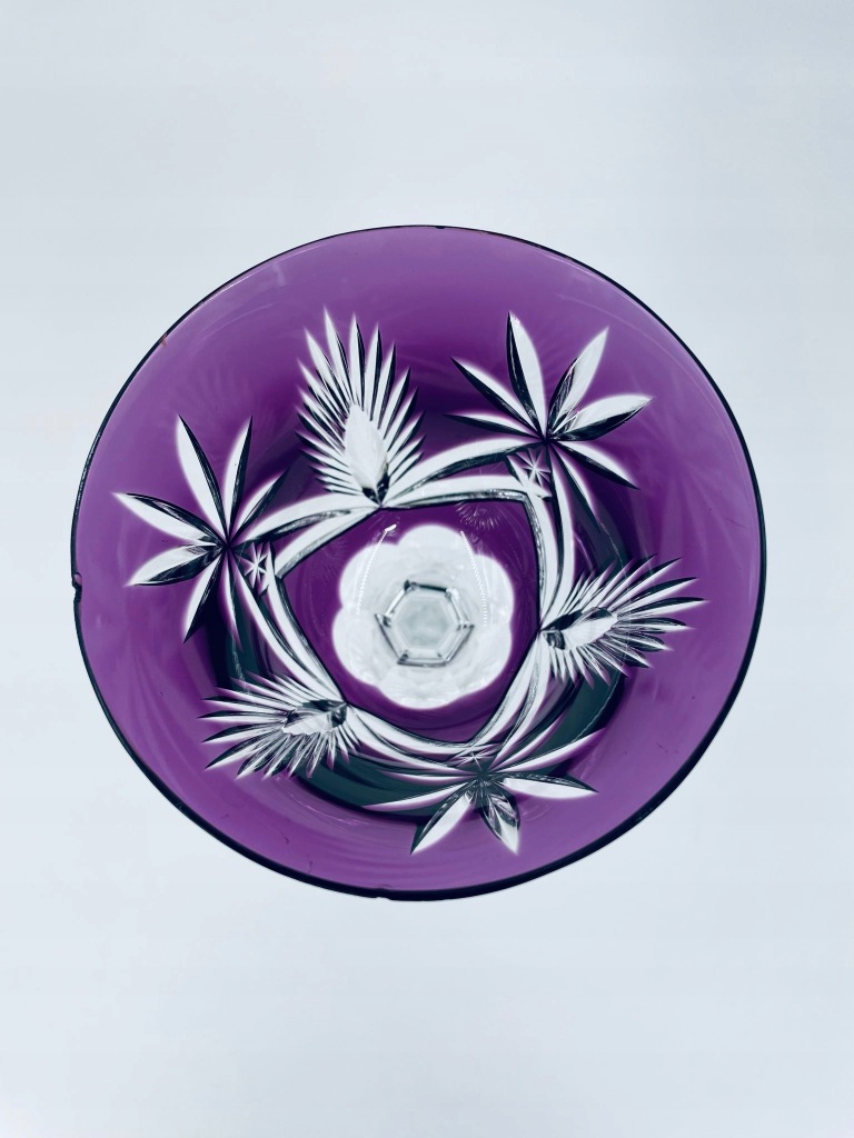 Kieliszek z pięknym szlifem w fioletowym kolorach wykonany ze szkła kryształowego.