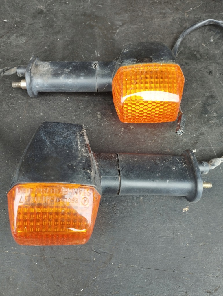 Sprzedam kierunkowskazy z Kawasaki ER5. Poza obtarciem z ostatniego zdjęcia stan bardzo dobry, brak uszkodzeń czy śladów napraw.