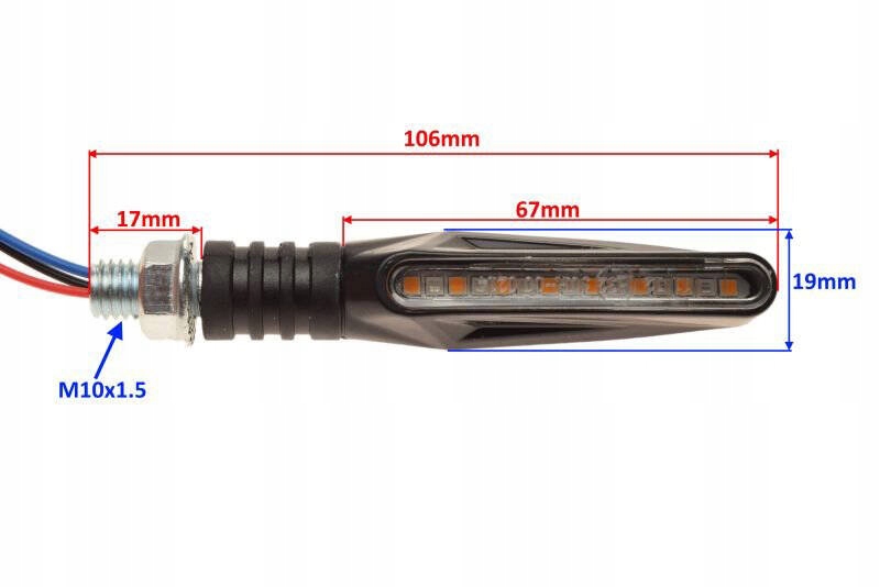 Gwint M10x1.5 gwarantuje stabilne mocowanie kierunkowskazów, minimalizując ryzyko luzów i niepożądanych przemieszczeń podczas trudnych manewrów. Długość przewodu wynosząca 255 mm zapewnia elastyczność montażu, umożliwiając dopasowanie do różnych pojazdów. Para tylnych kierunkowskazów sekwencyjnych z diodami LED to nie tylko praktyczny element poprawiający bezpieczeństwo jazdy, ale także dodający nowoczesności i charakteru Twojemu ATV/UTV.