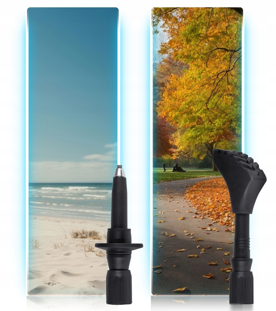 - Gumowa końcówka do asfaltu – końcówka amortyzująca, stworzona z gumy, doskonała na twarde, miejskie nawierzchnie jak asfalt. Redukuje hałas oraz wibracje, chroniąc zarówno kije, jak i dłonie użytkownika.