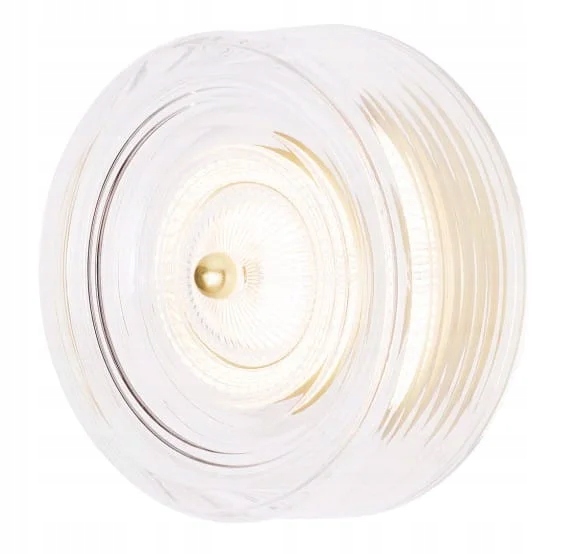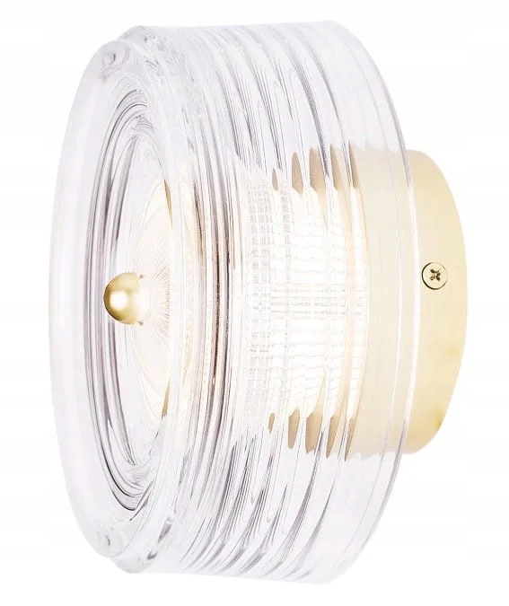 Kinkiet ścienny złoty okrągły szklany przeźroczysty klosz