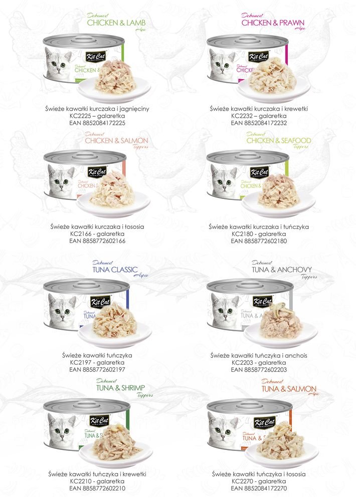 z naturalnych i zbilansowanych składników, które nie zawierają żadnych barwników ani konserwantów. Kit Cat jest w 100% karmą pozbawioną zbóż.