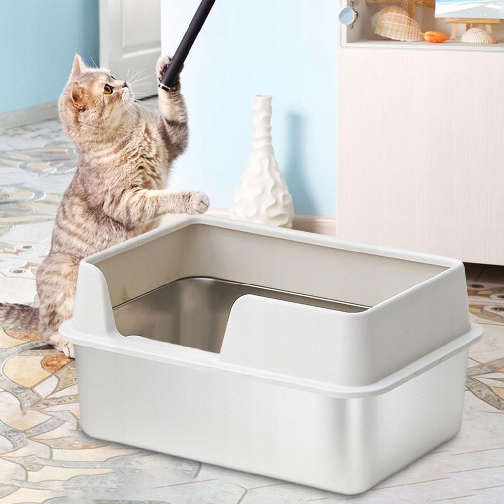 Cat Litter Box Large Kitten Potty Pet Cleaner Accessories Kitten Litter Tray L White