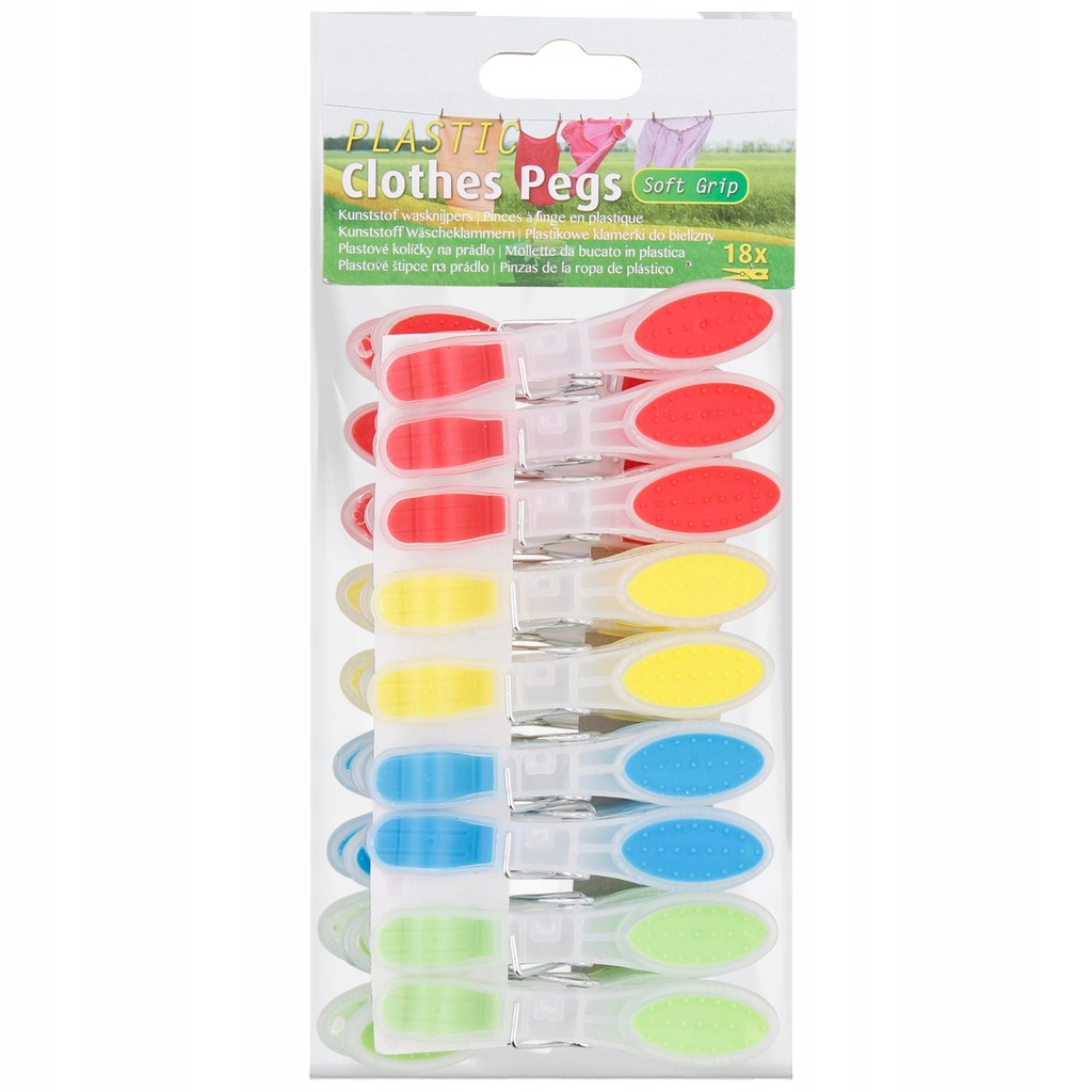 Mocne klamerki do bielizny z tworzywa sztucznego nie wyślizgują się z dłoni dzięki zastosowaniu gumowych elementów.