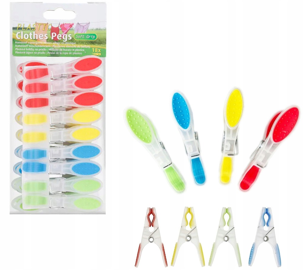 ✅KLAMERKI SPINACZE DO BIELIZNY UBRAŃ PRANIA 18 szt.