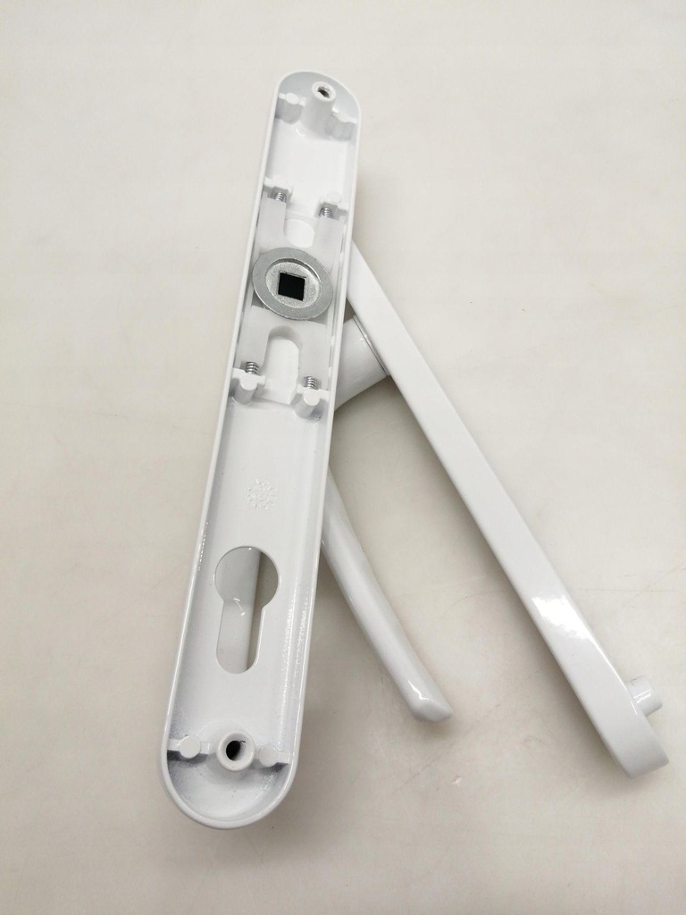 ROZMIAR: Odległość od jednej śruby do drugiej wynosi 210 mm. Odległość pomiędzy środkiem dziurki od klucza a środkiem klamki drzwi wynosi 92 mm.