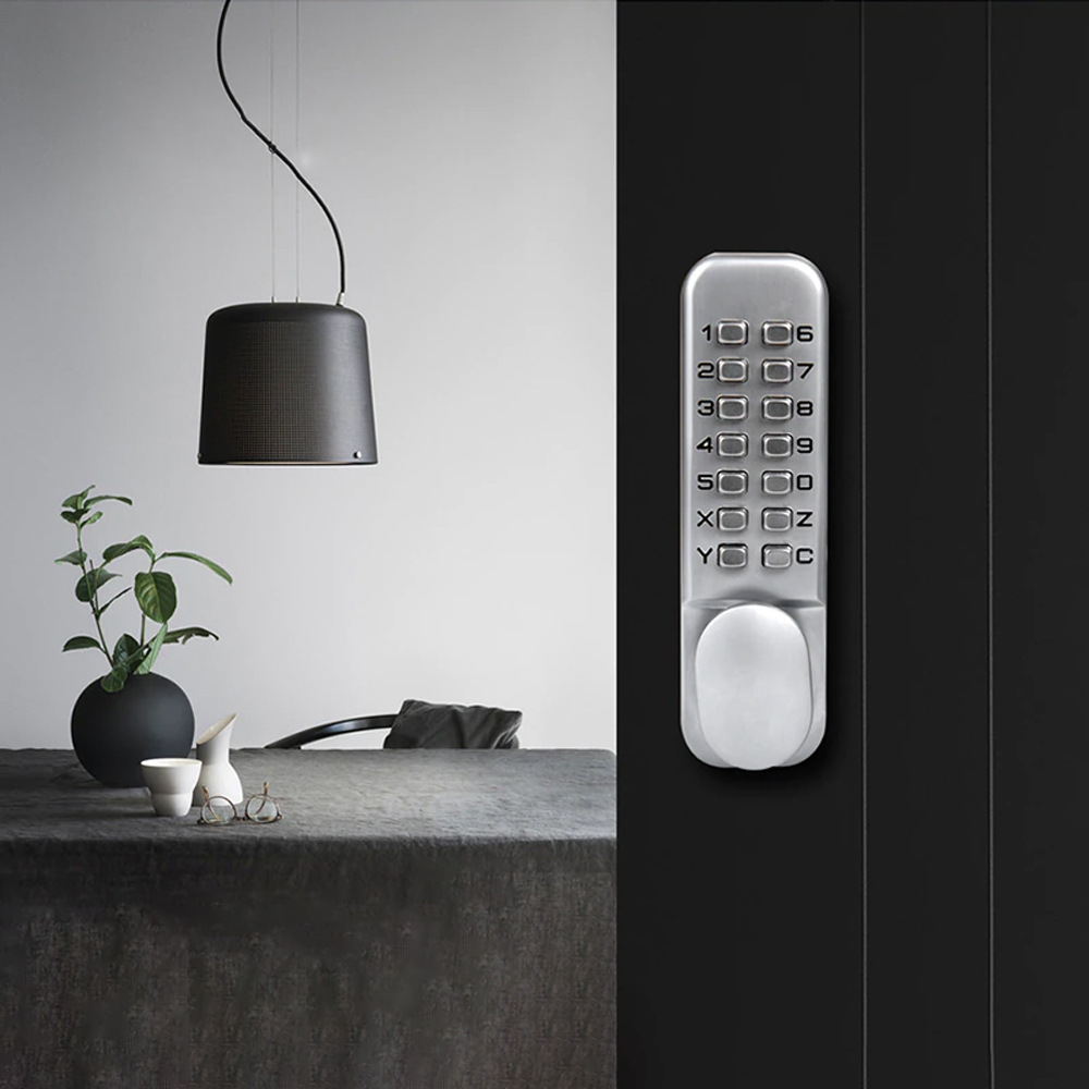 Zamek szyfrowyto rozwiązania optymalne dla tych projektów, w których stawia się na prostotę i szybkość obsługi. Do otwarcia drzwi wystarczy bowiem wpisanie kodu PIN. Kod może składać się z różnej ilości znaków. Klawiatura zamka na kod jest 14 klawiszowa. Kod ustala administrator. Nadawanie kodów odbywa się poprzez indywidualne i mechaniczne programowanie zamka bezpośrednio. Dzięki temu zamek do drzwi na kod może być otwierany wskazaną przez użytkownika sekwencją cyfr, co znacząco ułatwia jej zapamiętanie.