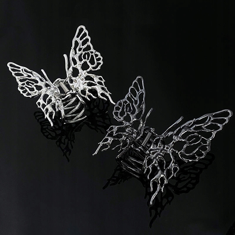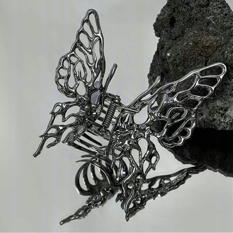 Elegancka metalowa spinka do włosów, kształtem przypominająca skrzydła motyla.