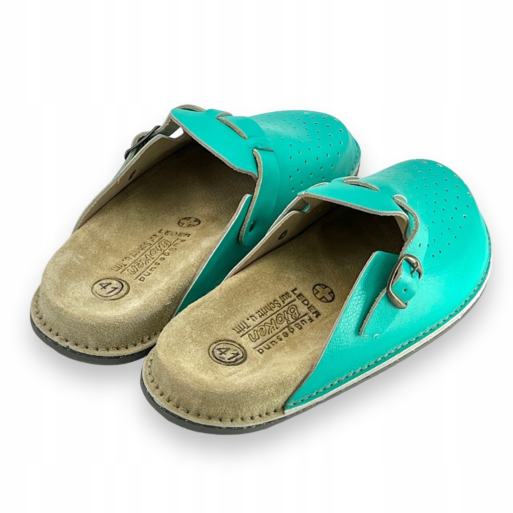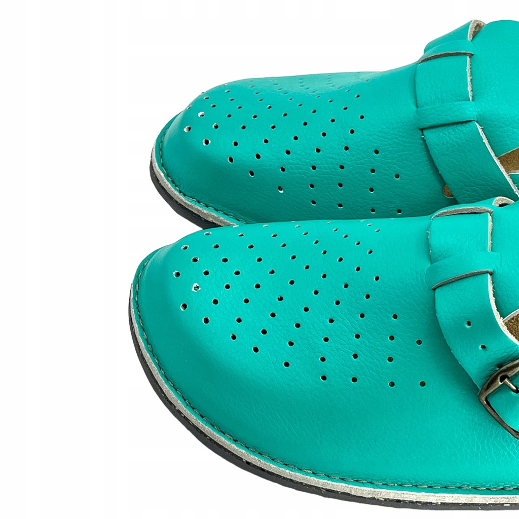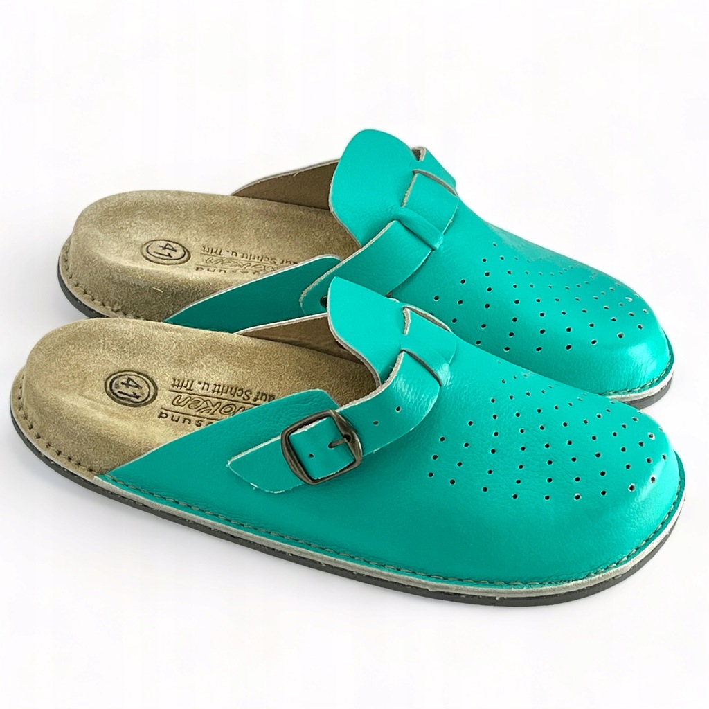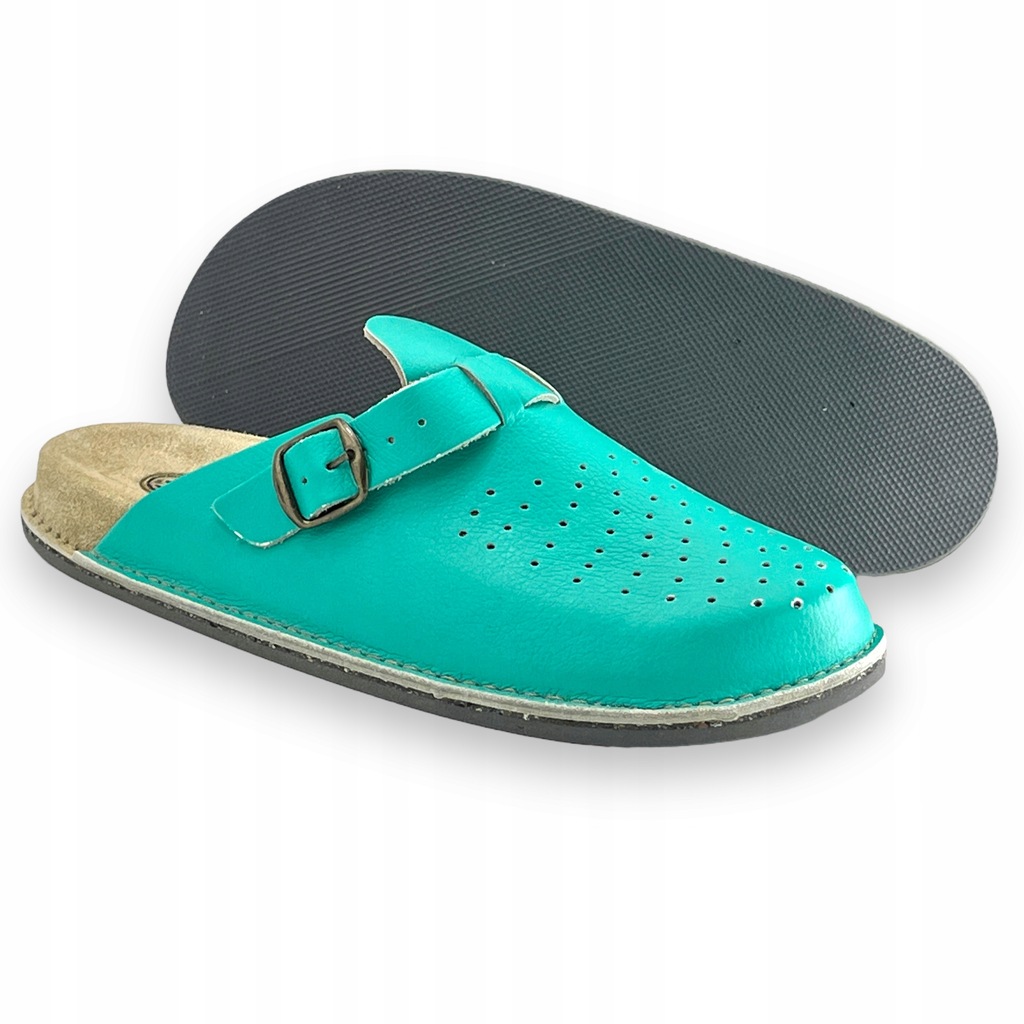 Klapki wykonane ze skóry naturalnej zapewniają wygodę i oddychalność.