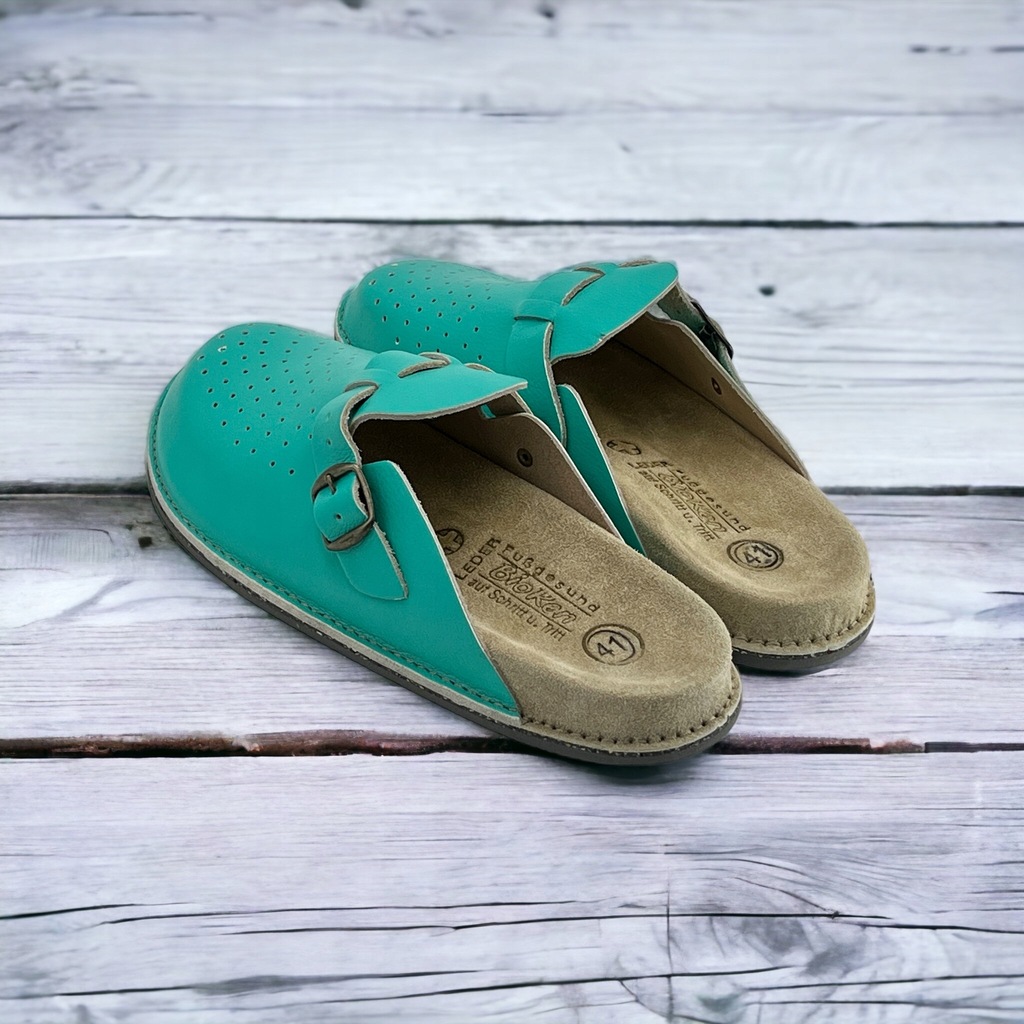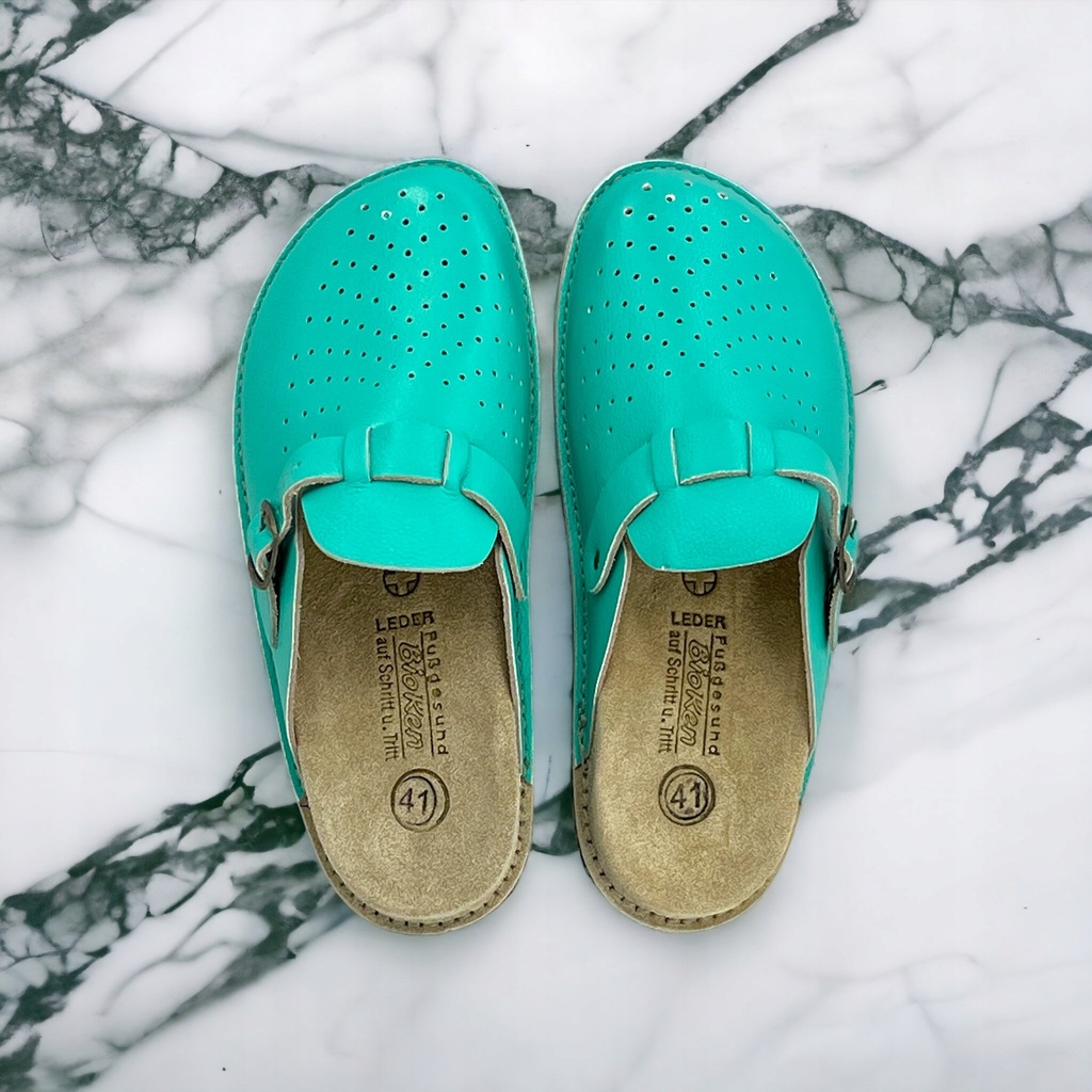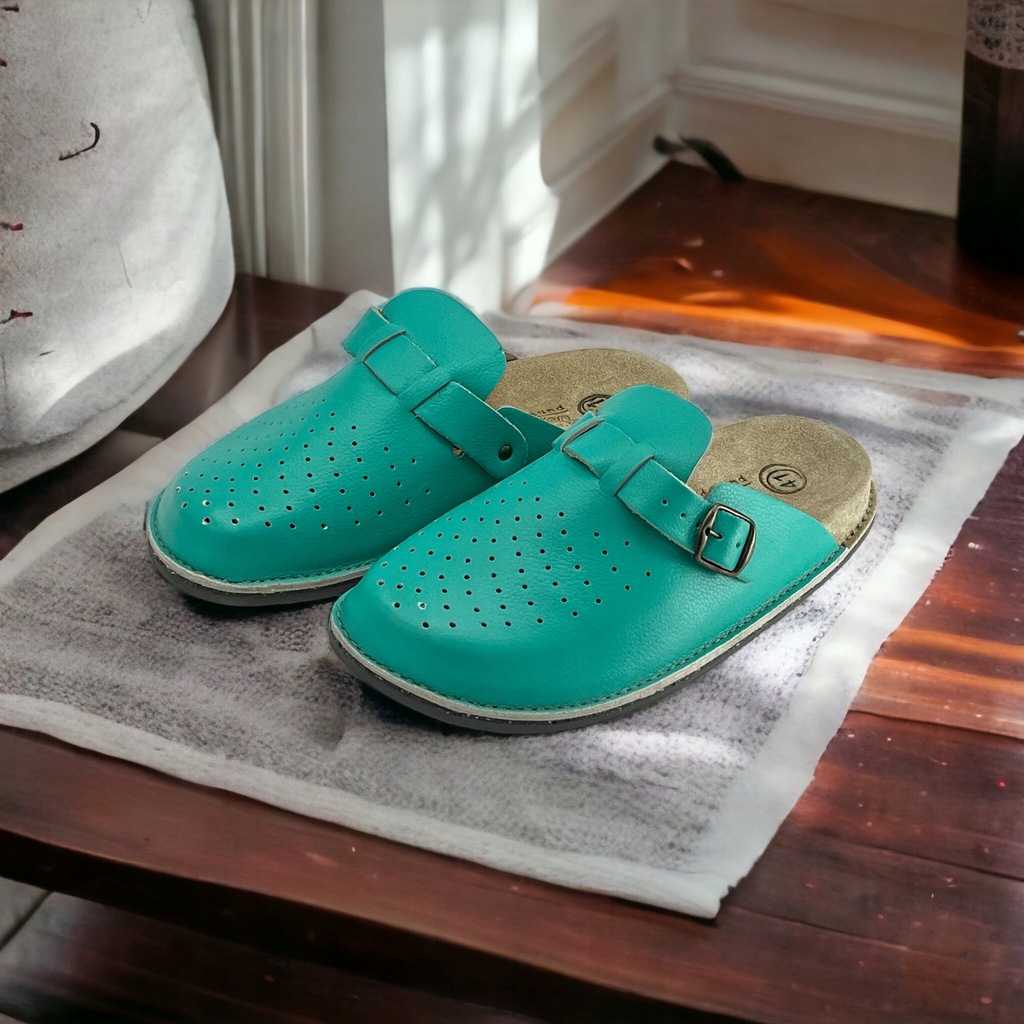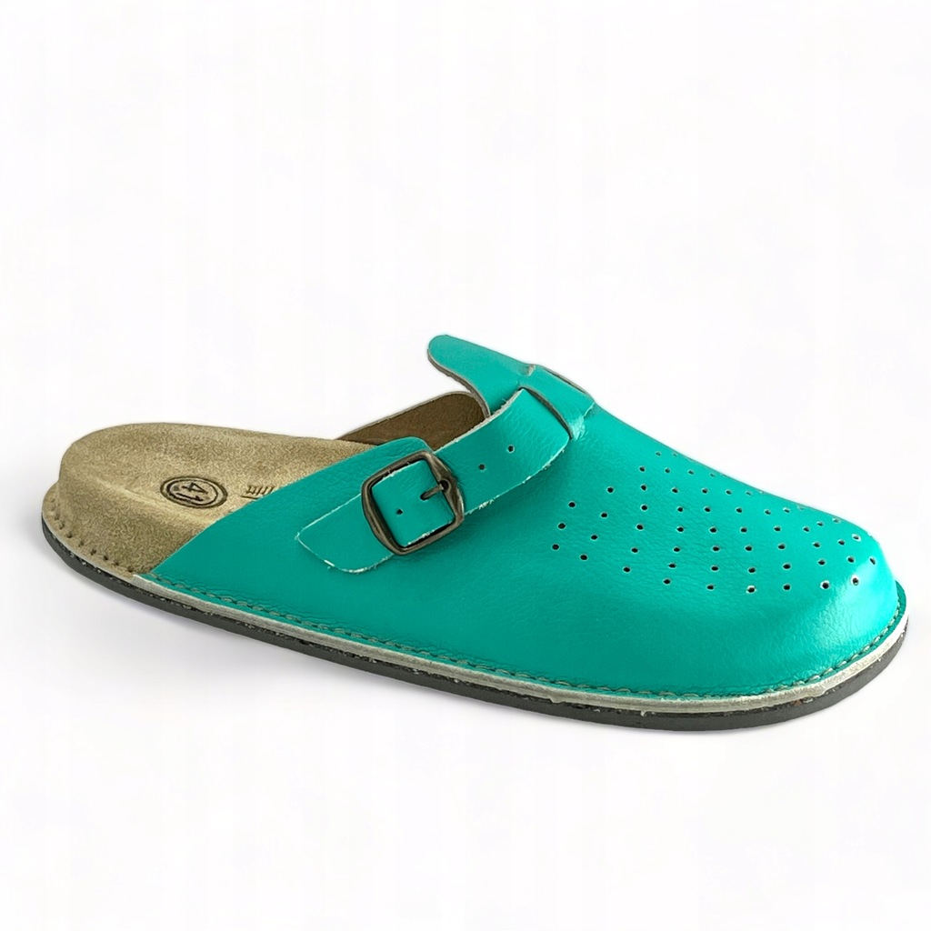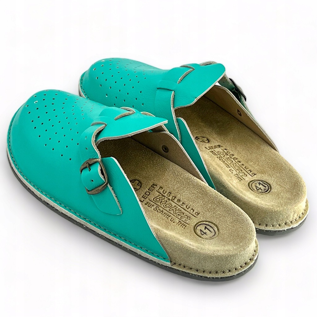 Klapki wykonane ze skóry naturalnej zapewniają wygodę i oddychalność.