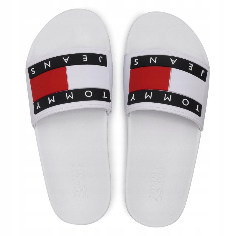 TOMMY JEANS KLAPKIMODEL: FLAG POOL SLIDENUMER KATALOGOWY: EN0EN01378-YBRNowe, klapki marki TOMMY JEANS. Uniwersalne klapki, doskonale sprawdzą się, gwarantując stopom wygodę. Firma Tommy Jeans postawiła na bezpieczeństwo oraz komfort użytkowania. Komfort użytkowania gwarantowany jest poprzez zastosowanie nowoczesnych rozwiązań. Oferowane przez nas klapki wykonane jest bardzo starannie z wysokiej jakości materiału oraz z dbałością o szczegóły. Prezentowany produkt posiada komplet metek producenta.Materiał: materiał syntetycznyPodeszwa: materiał syntetyczny