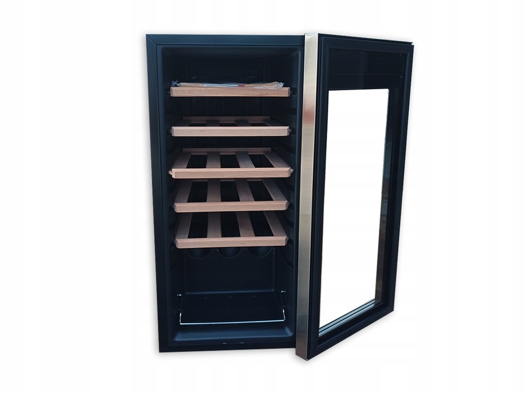 - Duża pojemność: możliwość składowania 18 butelek, dzięki czemu jest dużo miejsca na różne rodzaje wina, całkowita pojemność lodówki to 50L