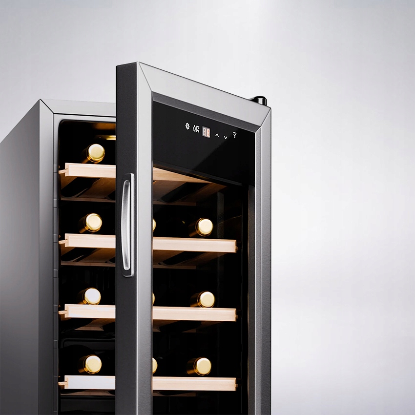 Oświetlenie LED wewnątrz nie tylko nadaje wizualne akcenty, ale także podkreśla prezentowane butelki. Dotykowy wyświetlacz umożliwia prostą obsługę, a funkcja Wi-Fi pozwala na wygodne sterowanie za pomocą aplikacji na smartfona.
