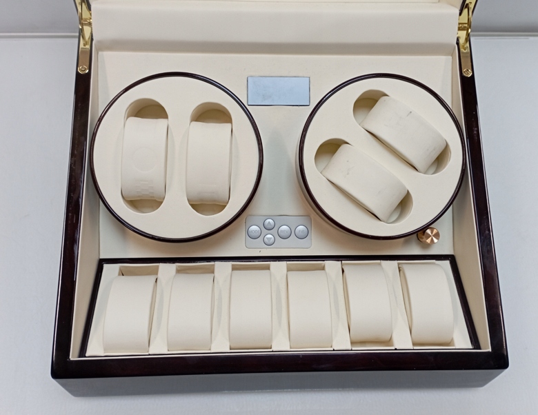 Miejsce na 10 zegarków - 2 podesty obrotowe, każdy z 2 miejscami i 6 stałych miejsc