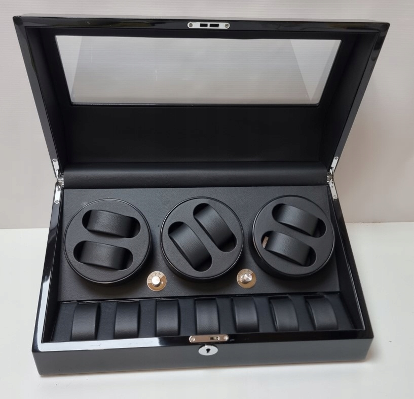 miejsce na 13 zegarków - 3 podesty obrotowe, każdy z 2 miejscami i 7 stałych miejsc