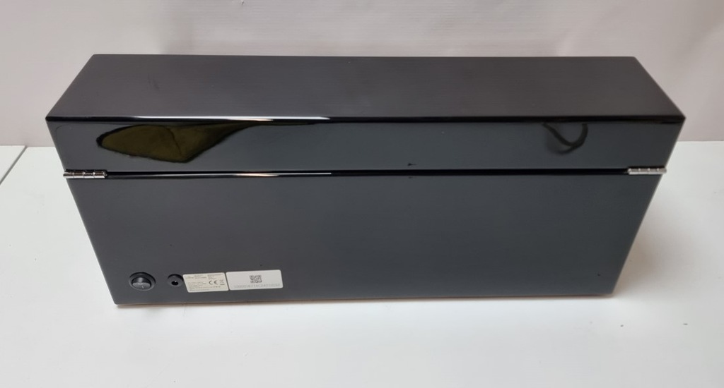 dekoracyjny design z naniesioną na całej powierzchni czarną powłoką lakierową typu piano, polerowaną na wysoki połysk, oraz z dużą witryną